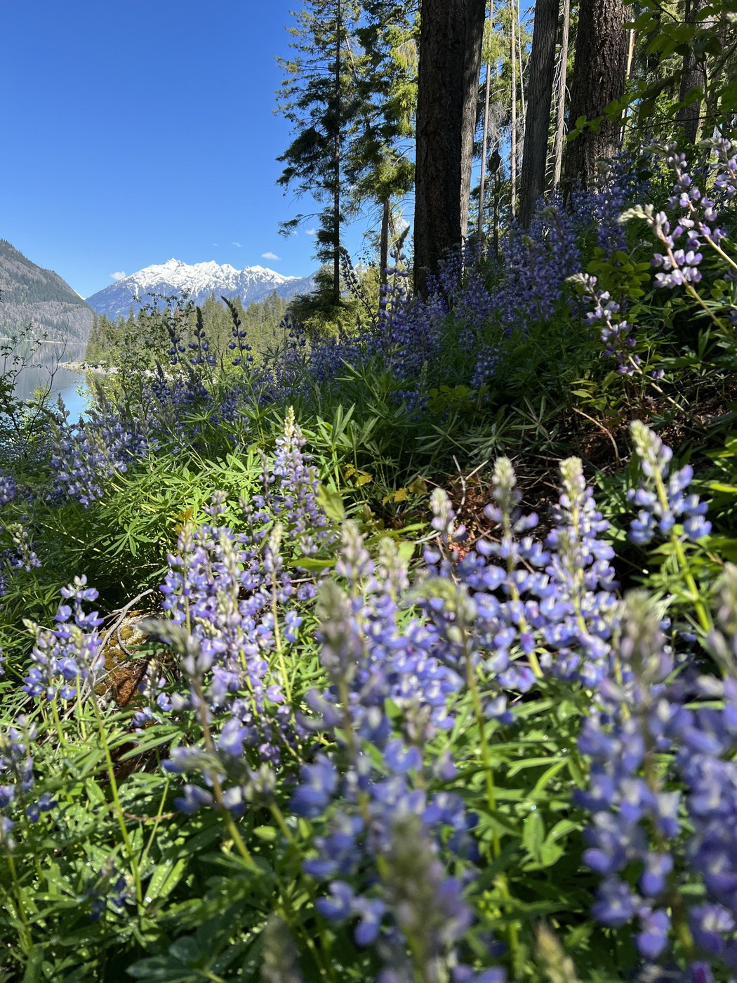 The beauty of this trail hits you immediately upon arrival at the Prince Creek campground. Wildflowers abound and never stop until you get to Stehekin. The trail was a little crowded for the first mile and a half and everyone was leapfrogging but eventually it thinned a bit and felt more peaceful. My group aimed to camp at Moore Point roughly 10.5 miles into the trail (11 if you count the half mile spur to the campground). The Meadow Creek shelter made for a great lunch & rest spot.