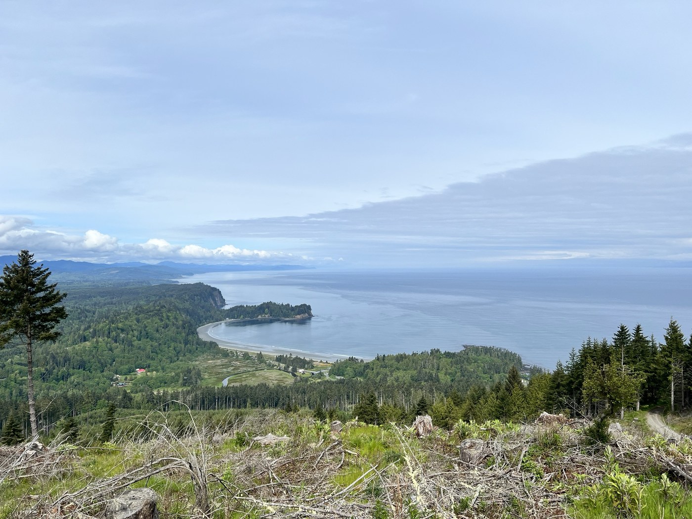 What a beautiful hike! The trailhead is just outside a large campground and the road is paved. The trail winds up and down through an old forest with quite a bit of slash and old, fallen trees. Every few switchbacks you’re rewarded with a glimpse of the ocean. The trails winds to a forest service road and then back on to the hiking path for a loop at the top of the peak. The loop has vast views of the Juan de Fuca straight and Olympic NP. The trail was well maintained, wide and the appropriate amount of ups and downs.