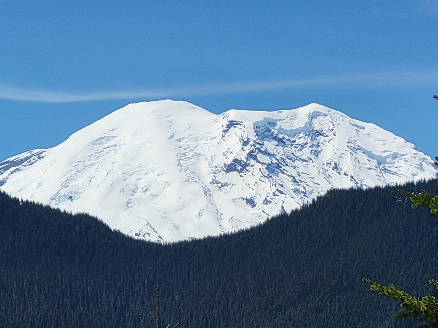 Our route: Parked at Camp Sheppard, took the White River Trail to the Palisades junction; hiked up Palisades to the junction with Little Ranger trail, then down to meet the other end of the White River trail, and back to the car. RT about 15 miles, elevation gain roughly 2800 feet. Took us about 7 hours of hiking, though we took our time; after Edelman's tumble a couple weeks ago, we're looking at areas of erosion or rockslides a bit more warily. Speaking of which, there are a few places to note. Heading up Palisades, before the staircase (so, early on in the hike), there's one short area of trail erosion which you'll want to be sure to step well across (as opposed to on). Looks eerily similar to where Edelman fell on the Carbon River trail. Then, on the Little Ranger trail, there are several switchbacks that could seriously use restoration. They are steep and slippery with loose rock and dirt.