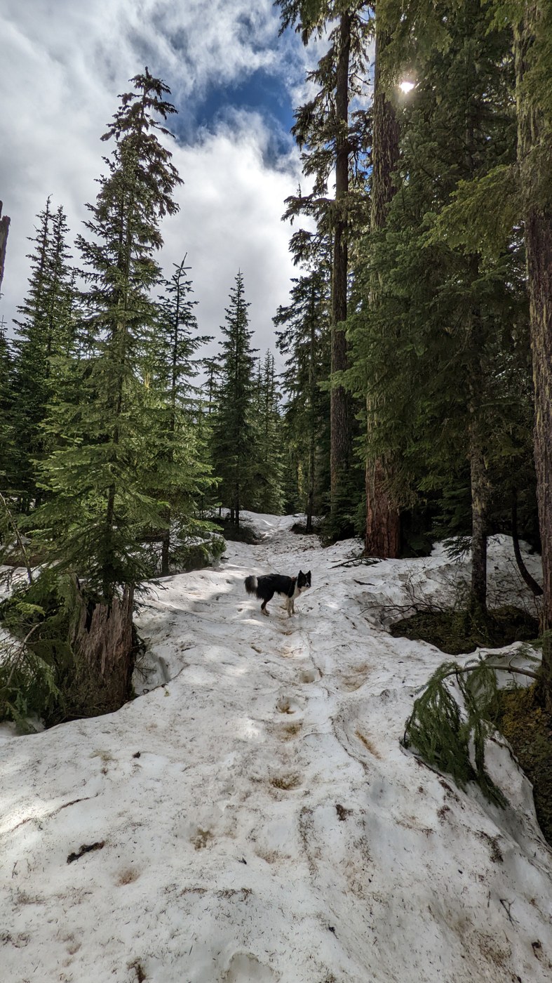 Took a gamble on hiking the ORV trail figuring that the way would be clear, motorized traffic would be minimal this early in the season, the trail wouldn't be too rutted yet, and snow would plentiful enough to keep bikes away from the lake and scored a grand slam. There's a solid half-mile of snow starting about two miles out and then it gets deep again right about when the trail meets Blue Lake Creek. I totally lost the trail at that point, but if you stick by the creek, you'll be fine, and then the lake itself is totally thawed-out and snow-free. I brought spikes and didn't end up using them, but I felt reassured knowing I had them. Not a lot of wildflowers yet, but soon.