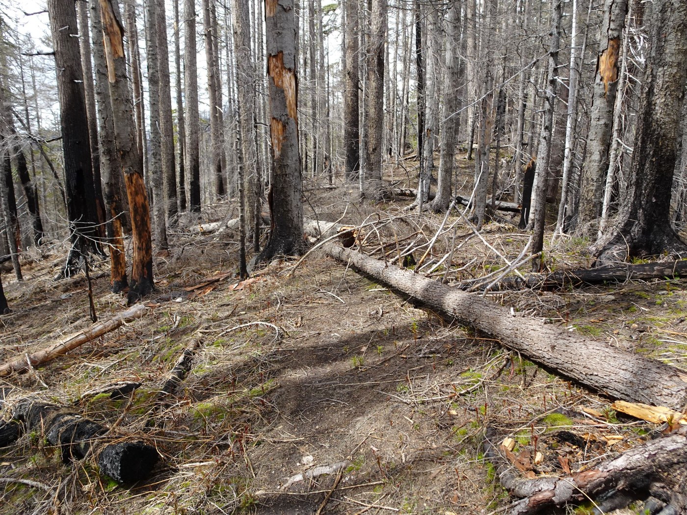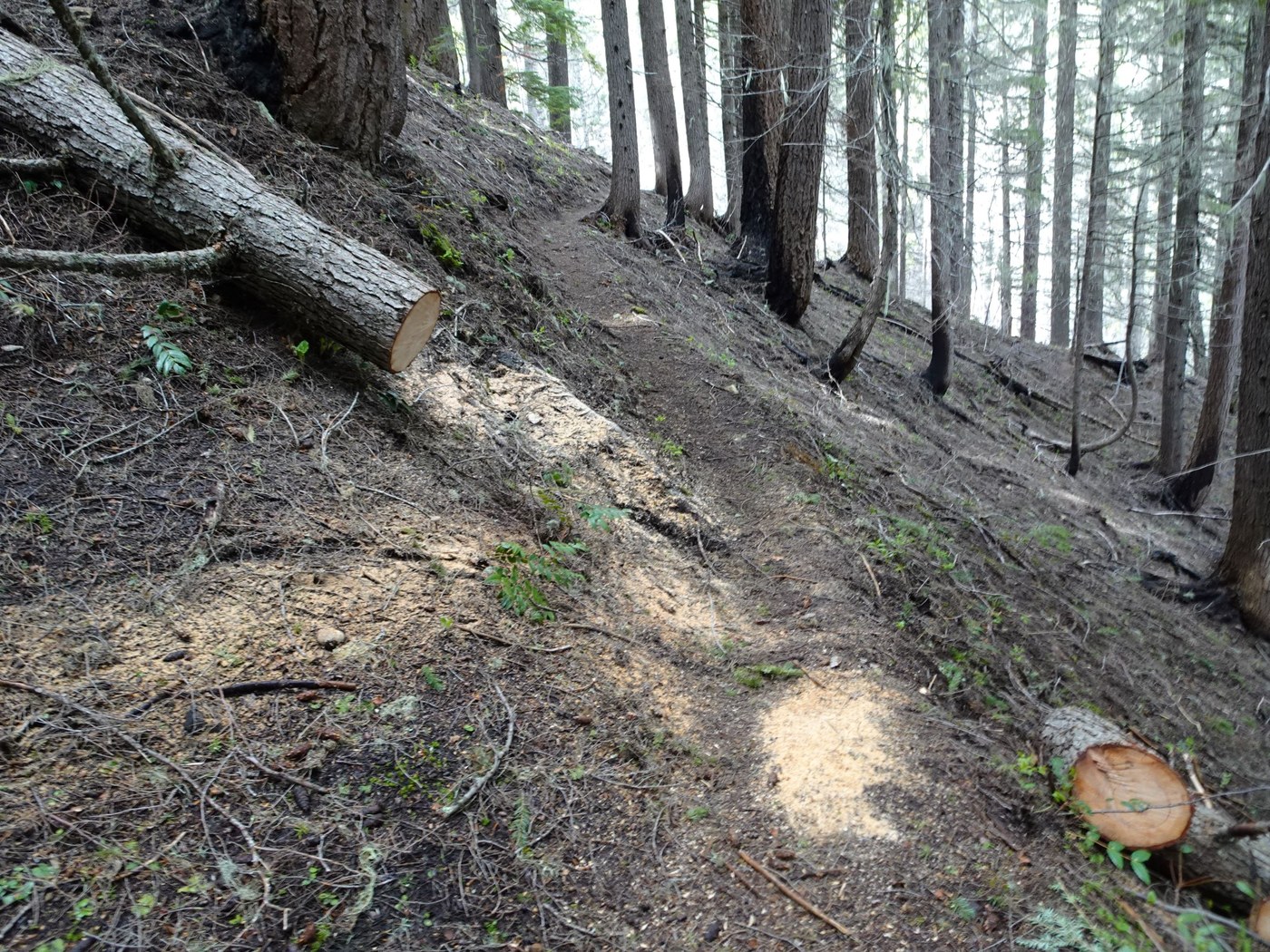 The trail heads to the first of several viewpoints. After the 3rd viewpoint, the trail runs along the ridge line. After reaching Little Ranger Peak, I entered the burn zone. Between Little Ranger Pean and the junction with Ranger Creek trail (where the old cabin once sat), there are many downed small trees. I took my saw along and cleared many of the branches to make it better. There is still a lot of work to do in this section.