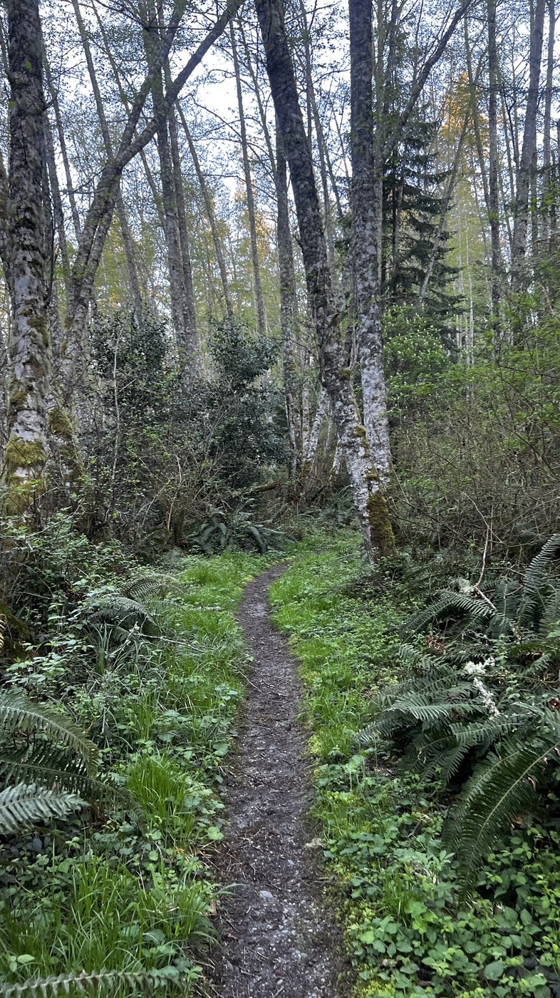 What a lovely trail! Well maintained and well marked. A beautiful winding forest trail with boardwalks, ferns, tall trees near the water.