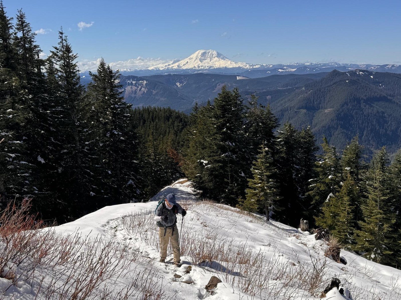2 hours up and 1.5 down, beautiful views of Rainier from the top.