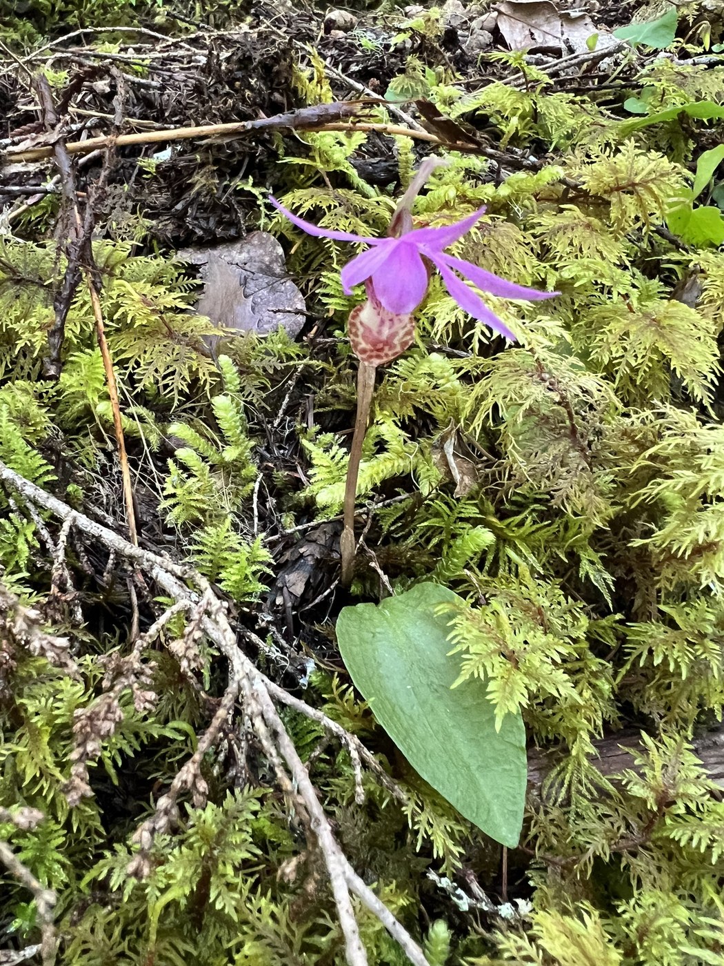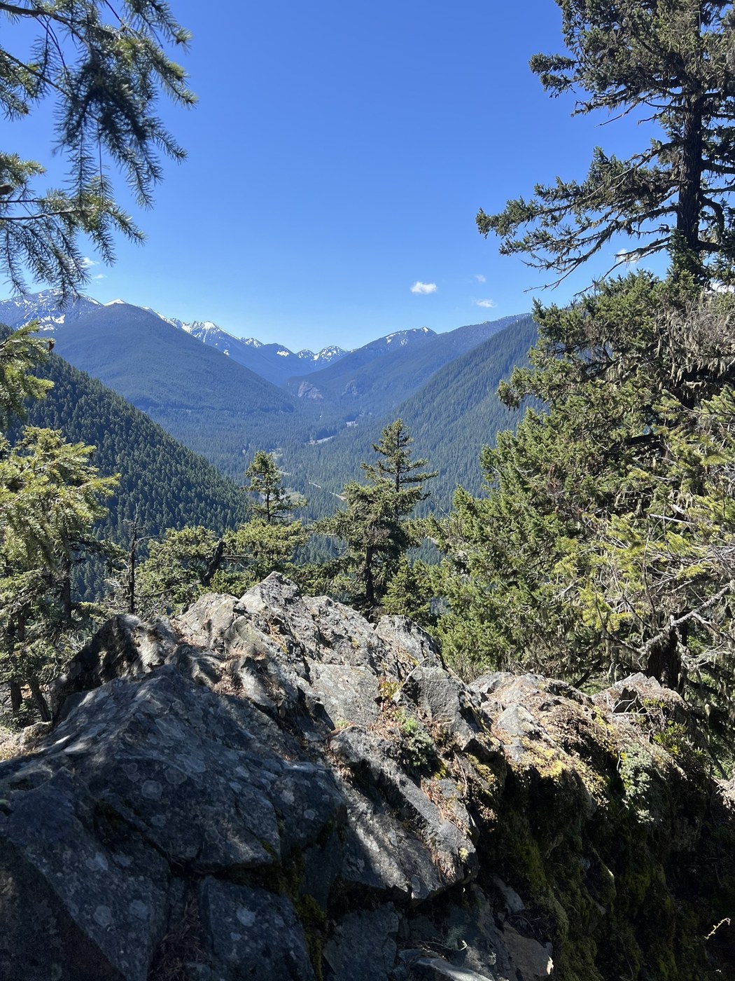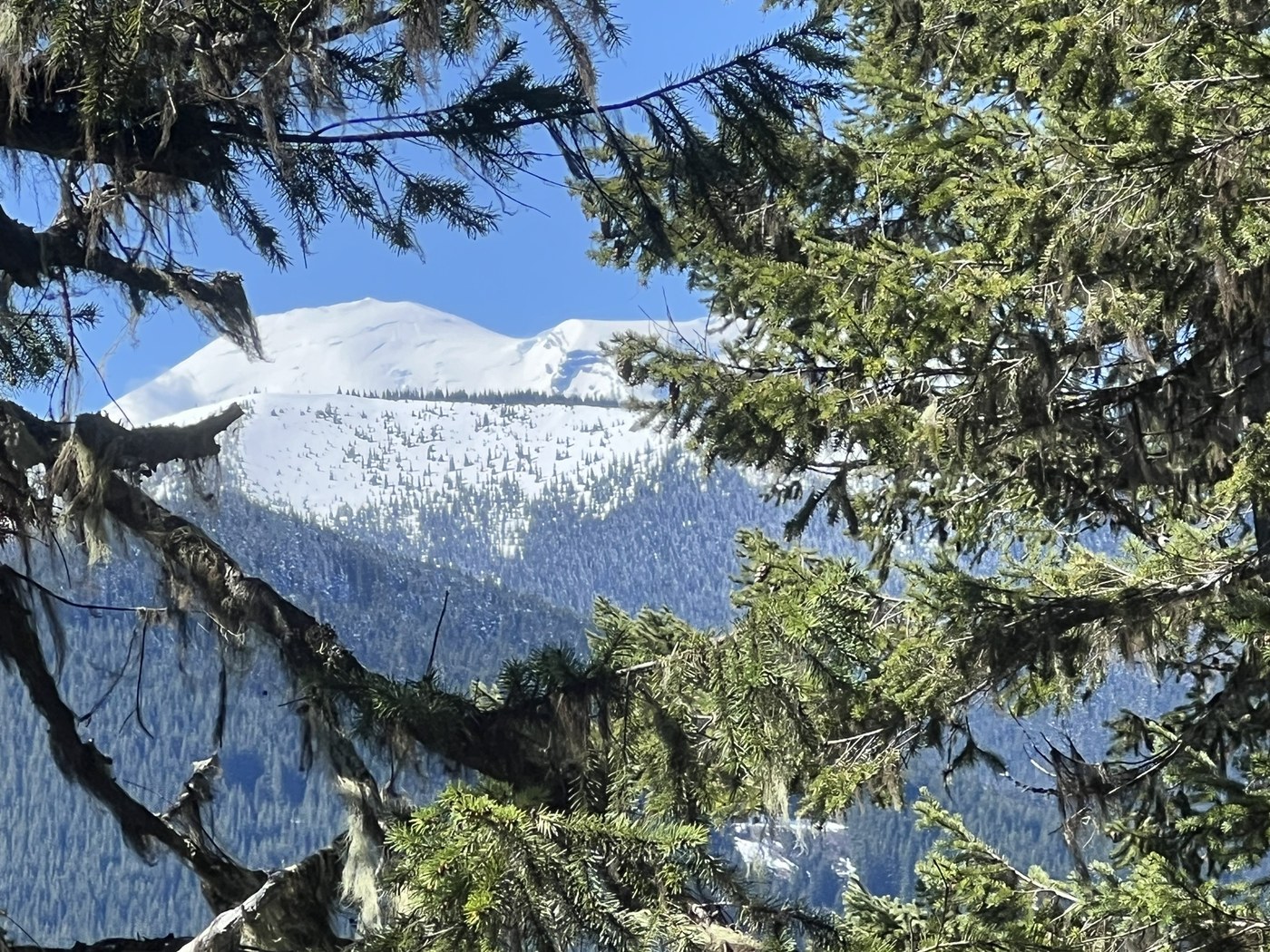 We had a great hike on the Little Ranger Peak trail today. Parking for this hike is on the shoulder of Hwy 410 just north of the FS Road 7160. It was 35 degrees with mostly sunny skies when we pulled up at 8:50. No toilet facility or trail sign here. Once you head up the trail you intersect with the White River Trail for a 1/3 mile or so before going left uphill on the Little Ranger Peak trail. The entire trail was saturated, soft, duff soil. This trail is multi-use so evidence of mountain bikers creating their own pathway down on several switchbacks. The trail has long winding switchbacks in the evergreen understory. Several spring wildflowers are in bloom - calypso orchid, oregon grape, Douglas violets and vanilla leaf in the first couple miles of the trail. A few pine drops were still standing tall from last summer. Our destination for the day was the side spur to the viewpoint trail at 3 miles. The viewpoint is a precarious pointed rock where you need to be a mountain goat to snag more than a peak-a-boo view of the White River Valley or Mt Rainier. We were able to find spots with sun filtering through to sit down for a lunch rest break. With the dense forest this was the most sun we saw all day. If you want solitude this trail is for you. We didn’t see another hiker the entire time we were out. Helicopter activity could be heard for the last 2+ hours over at the Buck Creek airstrip. Most likely doing practice training of some sort. Wildlife sighting was limited to a wren singing close to the trailhead. We packed up and headed down at 11:50, arriving back to our vehicles just after 1:00. Another fantastic day out in nature with friends.