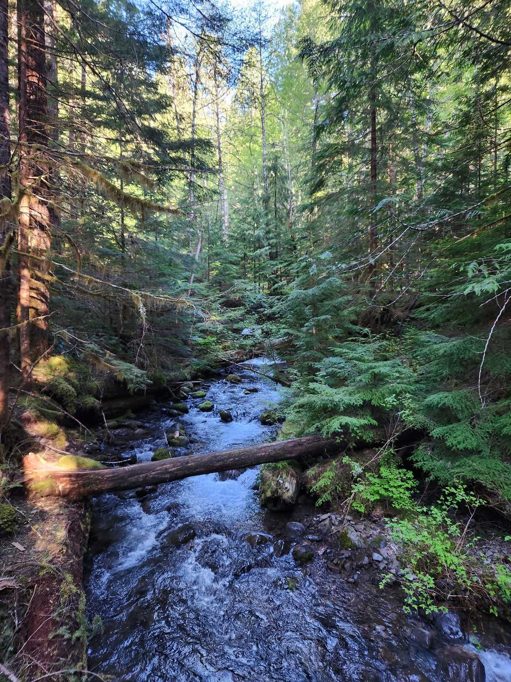 We rode our bikes from Lower Falls to about a mile before Middle Falls, but there were too many downed trees to carry bikes over. But then we hiked the rest of the way to Upper Falls. Yes there are blowdowns along the way, but not too many and most are easily passable (biggest one is on the final approach to upper). It's an absolutely gorgeous trail, the falls are gushing! There was nobody on the trail Sunday morning and Lower Falls campground had just opened this weekend.