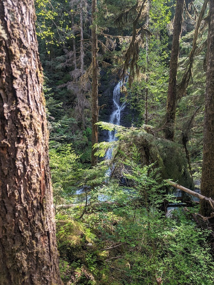 The hike itself was lovely. I arrived at the trailhead around 2:30pm, and there were 5 other cars present. The trail, even after you arrive in the wilderness area, is in largely good condition, with only a couple of trees to go over or under. There is one large tree that has steps cut in between the 2nd and 3rd falls that required some hands on my part to get over, but other than that, it's just walking. I turned around after the 3rd fall today, so I don't know how the swamp portion of the walk is looking (but probably muddy). I got back to car around 4:30pm, and there were only 2 other cars in the lot, one of whom caught up to me on the drive out.