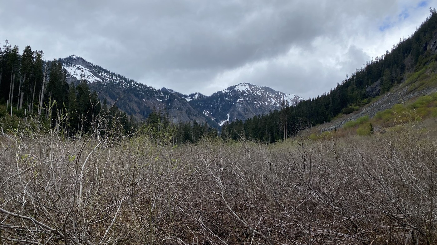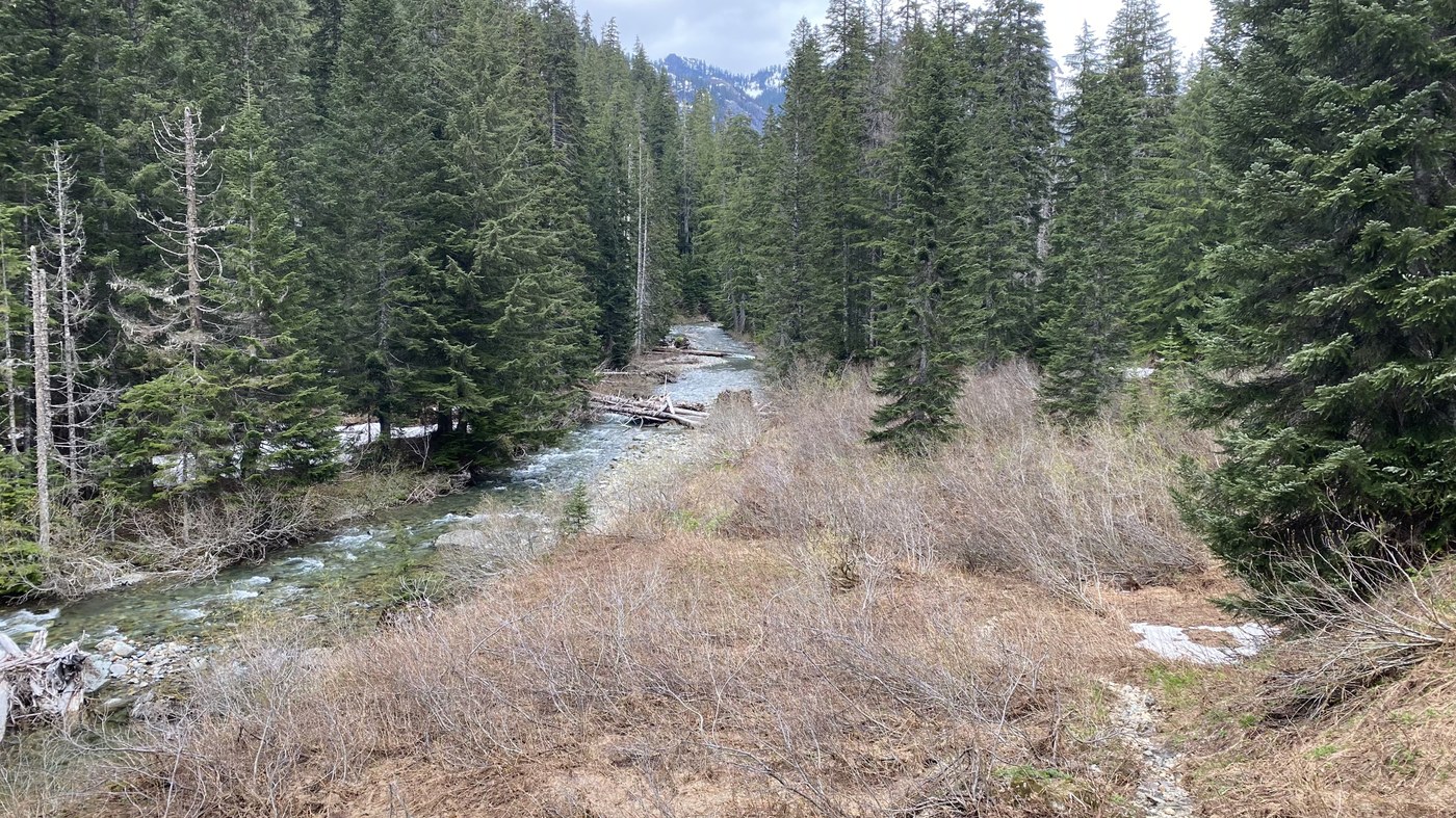 I went about 4 miles from the Gold Creek Pond TH. Bleeding heart and trillium are blooming. Patchy snow and creek crossing were not an issue. I turned around after reaching a long stretch of slide alder. The trail was still visible but much of the alder was growing horizontal - pushed down by winter snow and/or human snow recreation. (I don't know if the alder will spring up but you may want to bring some lopers.)
