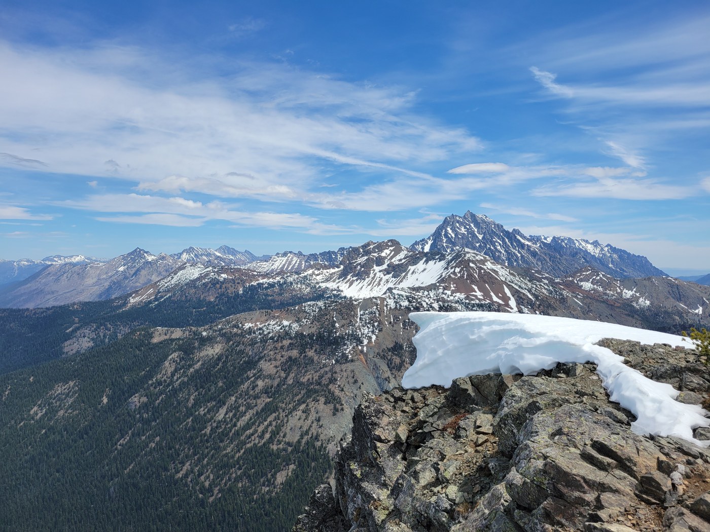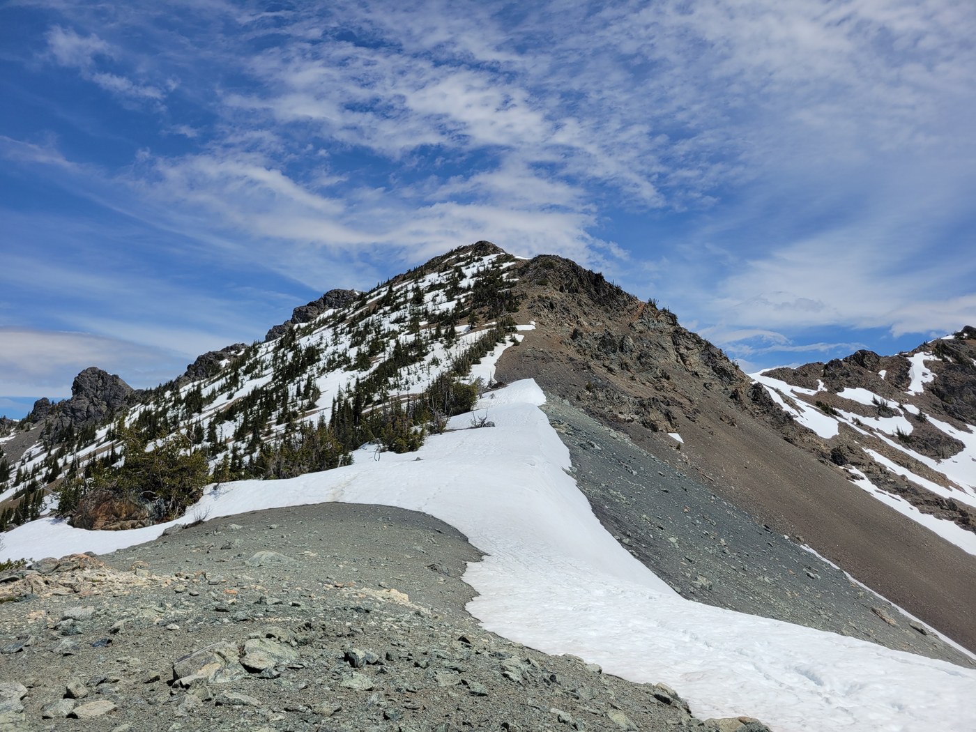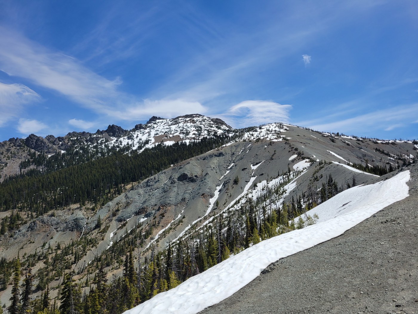 Wow those views! It's almost entirely melted out now, the snow patches can be skirted 95% of the time. I'd still be comfortable with snow crossings though no microspikes or ice axe necessary.