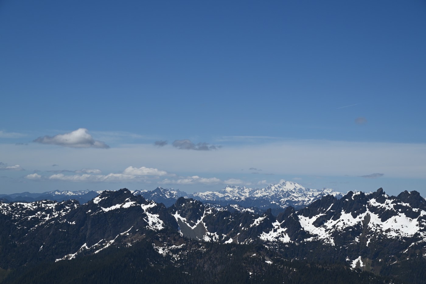 Gorgeous day for a hike! Blue skies, hardly any clouds, but quite a bit of snow still on the mountain. We were able to see Mt Rainier, Mt Adams, Mt St Helens and Mt Baker on the hike. We got to the parking lot around 12pm.