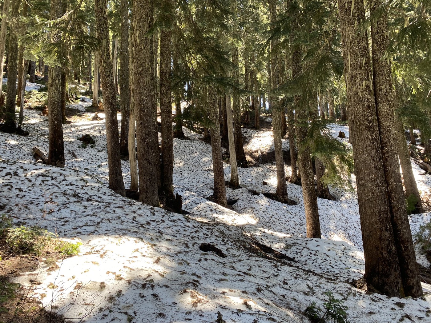 There is still a little snow on lower sections of the trail,will probably melt out with the heat in the next few days. A lot of snow at around 5000 feet in the trees just below the rim. My hiking partner and I tried crossing snow fields to find the trail but ultimately decided it wasn’t worth getting hurt or lost and turned around.