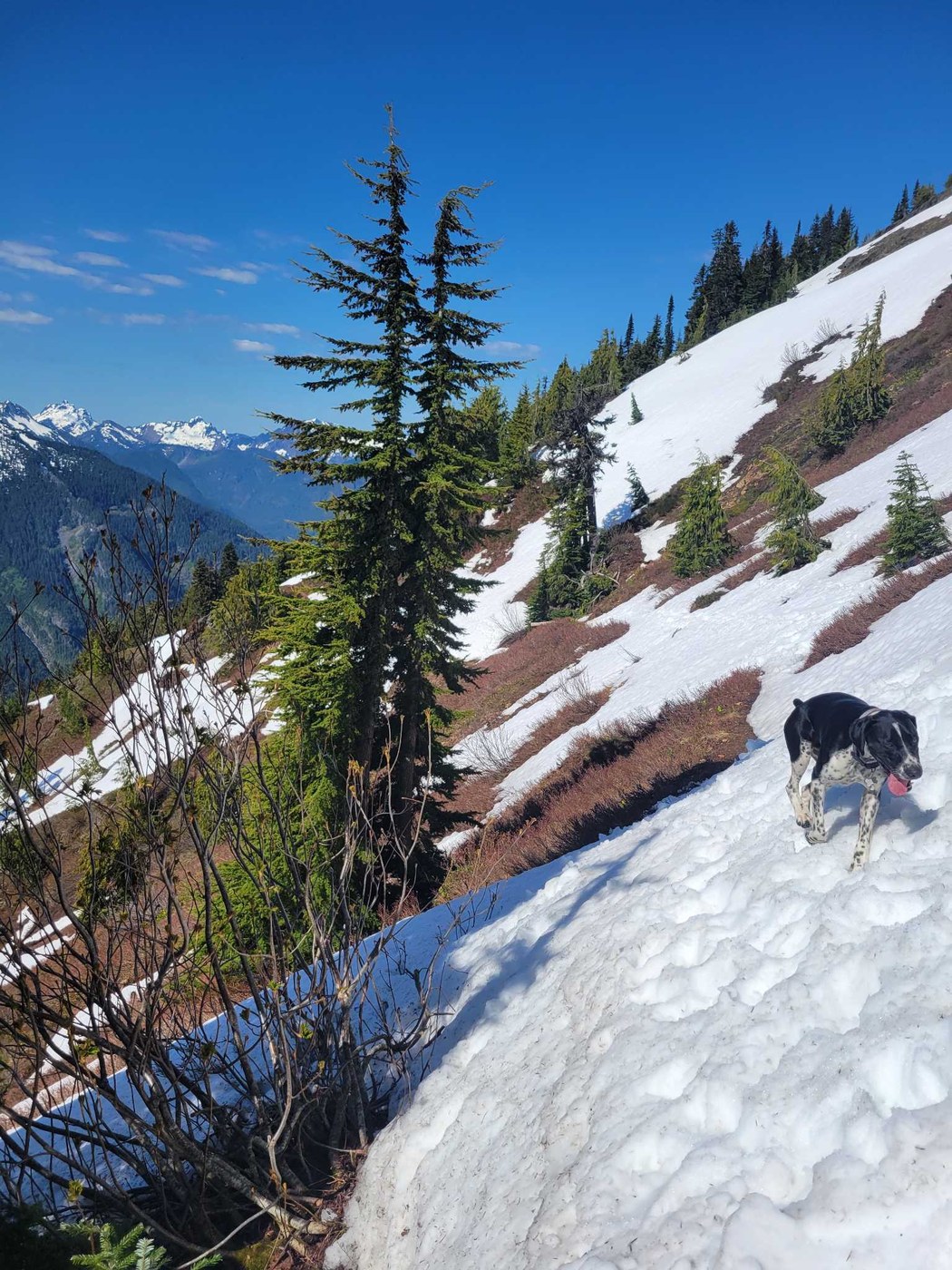 The snow reminds me of a 711 slurpee, it isn't fun for hiking through. That being said, I didn't use anything other than boots, trekking poles, and an ice axe to cross.