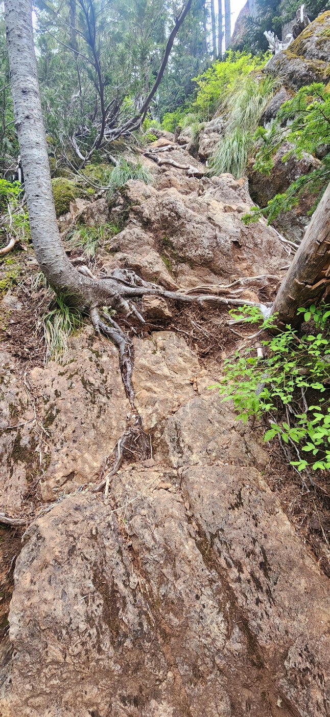 Coming back down wasn't too difficult but it did require switching between poles and using my hands so I didn't leave my kneecaps behind. Having confidence in your footing will make the descent easier than it looks.
