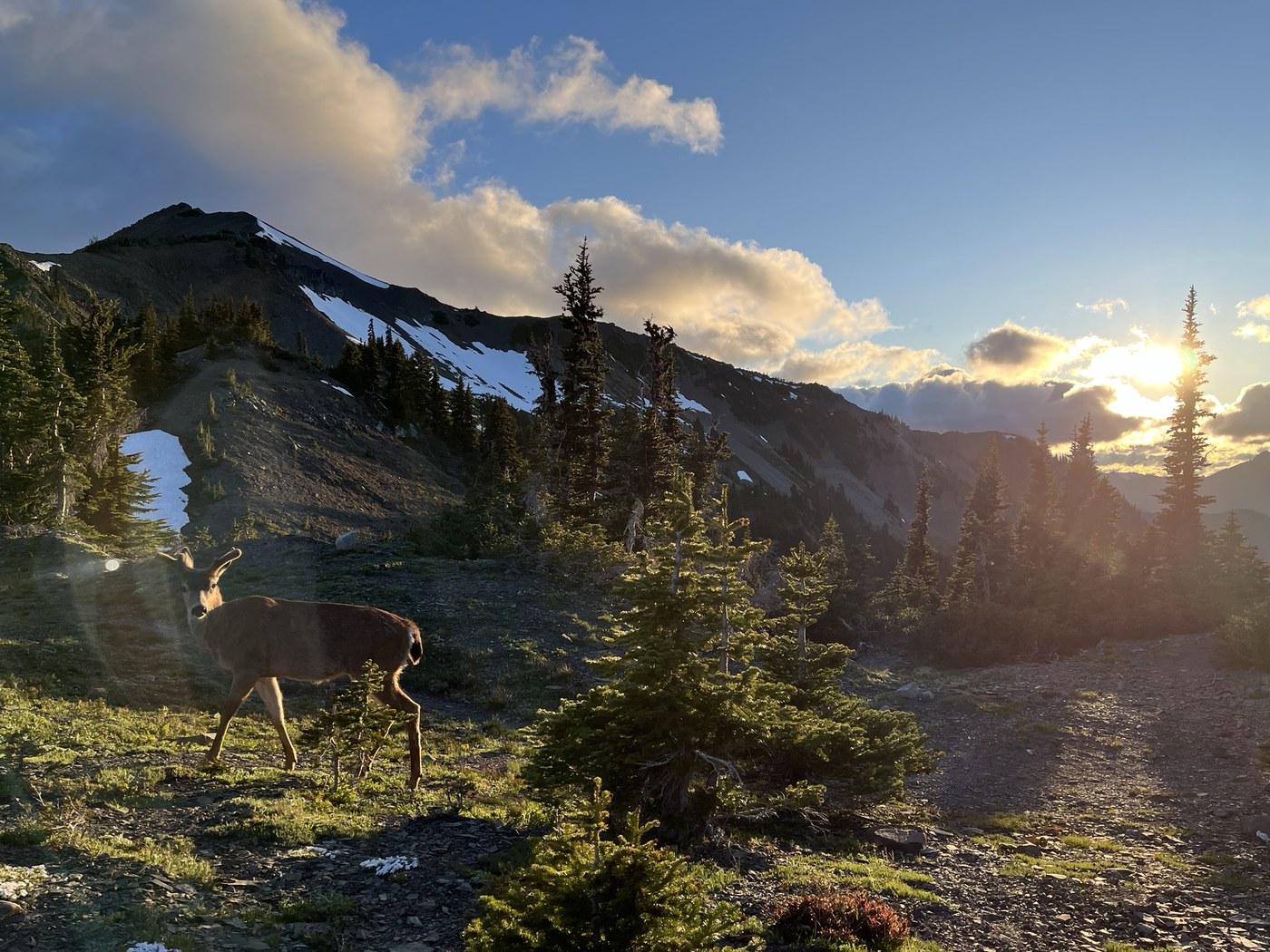 - Be mindful of the deer interest in your salt excretions. A four-point buck seemed to hang around the periphery of the camping area and walk through it occasionally. We packed out a couple bags of deer deposits from the campsite for the benefit of the next campers.