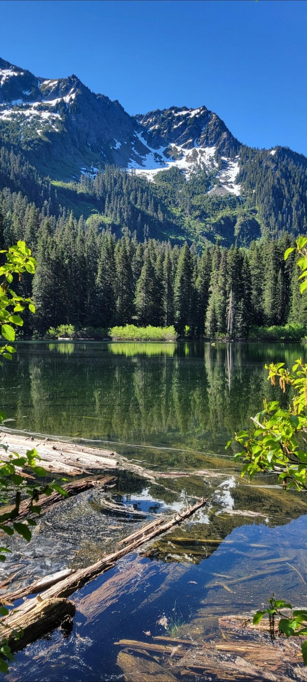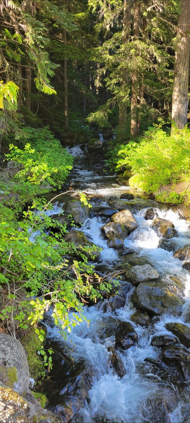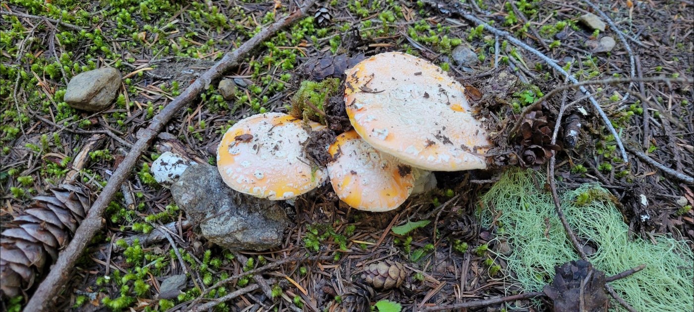 The trail was in great shape. Lots of parking near the trailhead. No facilities, so plan accordingly. The trail initially gains half the elevation the first 1/3 and final 1/3 of the trail. The central portion is level and pleasant. There was a short section of trail with mud and water flowing across the trail, but it was nothing concerning. I observed a plethora of Yellow Amanita, and a couple Elvin Saddles along the trail. There is a log crossing Lanham Creek at the lake outlook, but I did not cross it to explore. Access to the lake from my stopping point was limited, as were the views of the lake, but the small window of accessibility was very pretty.