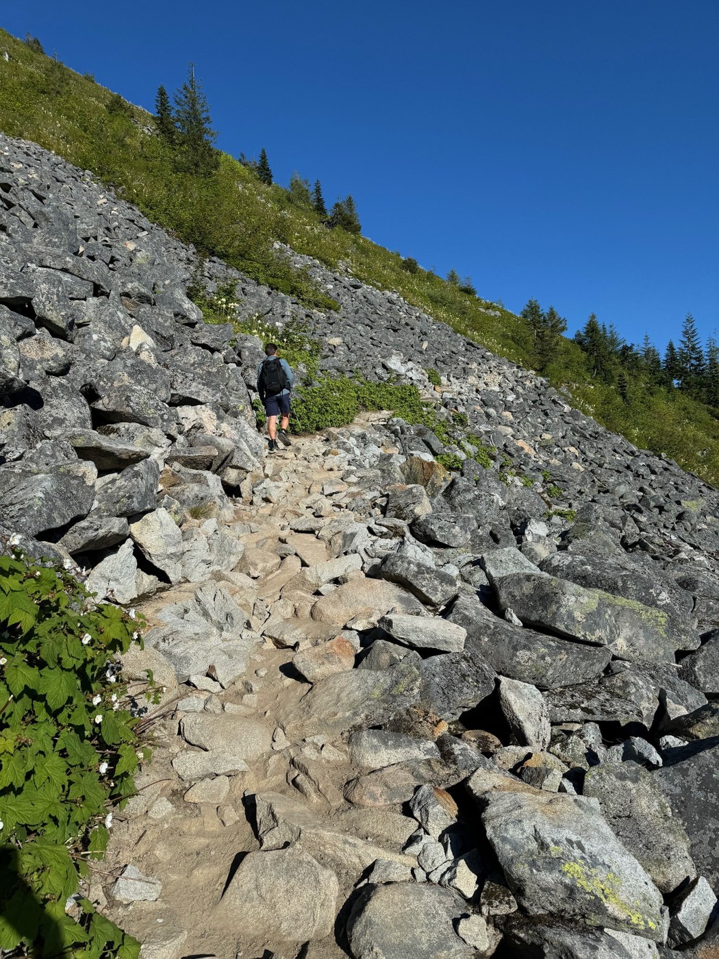 * I'm always amazed how steep the trail gets after the Mason Lake trail junction. It basically goes straight up the mountain until you to the ridge that you can follow to the summit. The hike along the ridge goes from boulder hopping to hiking through some trees.