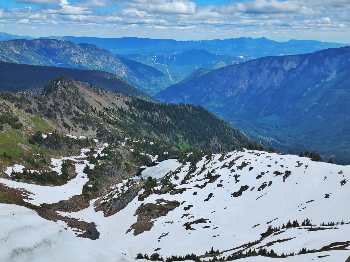 Although there were still lingering snow and cornices on the ridge, the summit was snow free. Rock lake looked almost thawed and the view of surrounding peaks was gorgeous. Only met 1 person on the trail all day and I had the summit to myself.