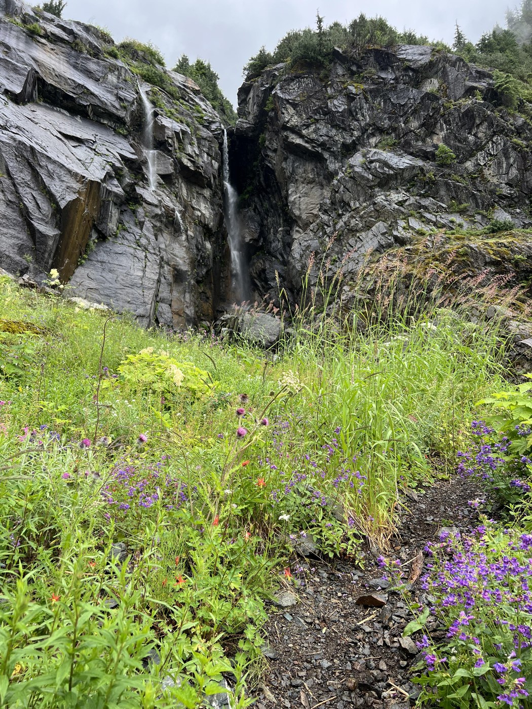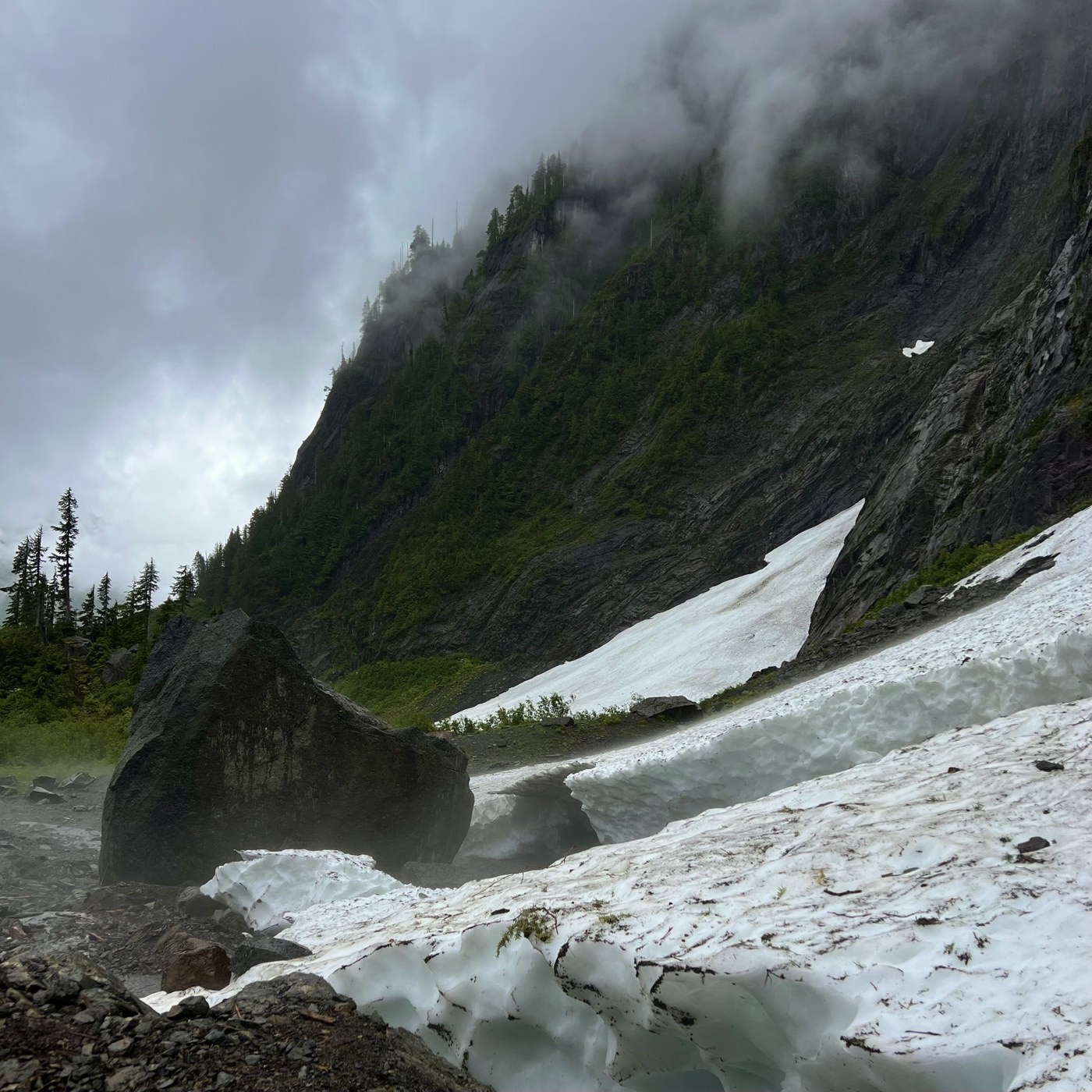 Hiked on a slightly rainy Sunday at 11am - the weather meant the trail wasn’t very busy at all, and we had great misty views all day! There are a few caves open right now, with a lot of snow left on the avalanche slope. With all of the wildflowers in bloom, this is an excellent time of year to go. Also, some really interesting birdwatching at the boardwalk, if that’s your thing! Just be aware - the bathrooms were the roughest I’ve ever seen.