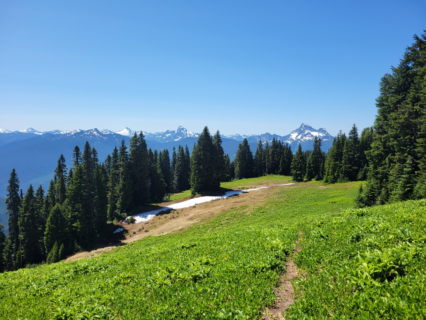 1) Not kidding about the work done on the trail up to a point. The lower few miles were actually brushed out (as in someone trimmed the brush on either side nice and short). I should have counted recently sawn logs (hewn?).