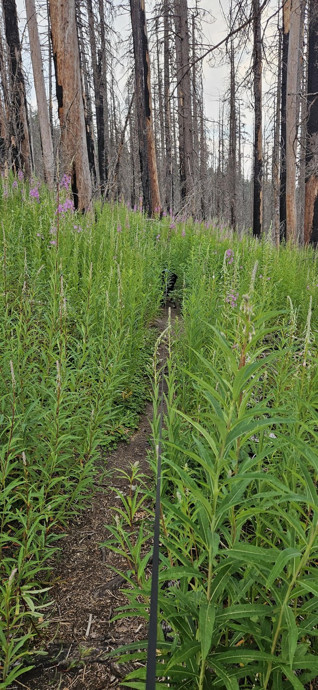 Once you get to the trailhead, there is a sign that points straight to the trail that makes it extremely hard to miss. Once on the trail, you will run into some overgrowth early on while walking through the burn area (see photo). This continues off and on for about the first 1/2 - 3/4 of a mile. Most of it seemed to be fireweed (super pretty flowers), so nothing itchy, but I was glad to have long sleeves and pants on. The rest of the trail was in great condition! Good enough incline to get your heart and lungs working but nothing too steep.