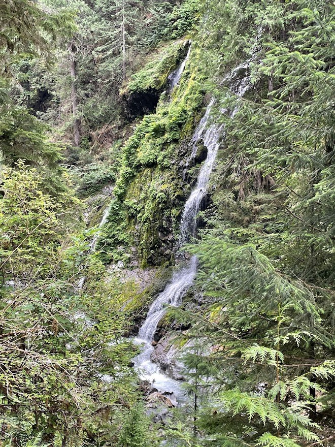 There are a ton of ripe thimbleberries, blueberries and red huckleberries that crowd along the trail, particularly after the first falls. We spent a lot of extra time standing around and snacking before heading back to the parking lot!