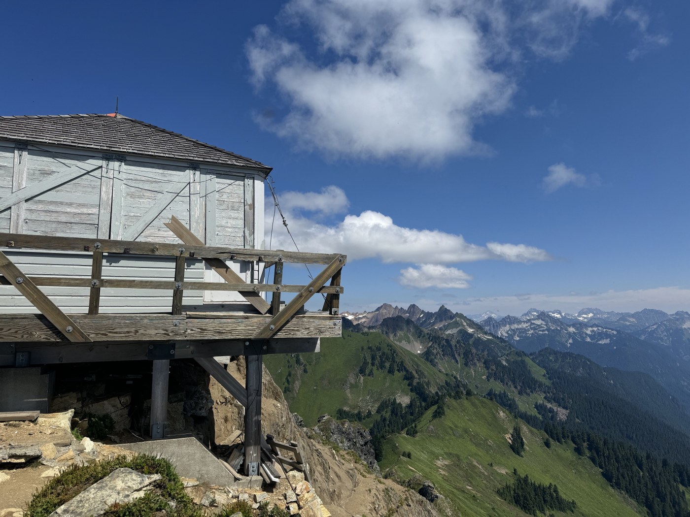 Fire adjacency: definitely smelled smoke upon starting the hike. However, visibility was great at the lookout and we either adapted to whatever reduced air quality there was or it was just generally manageable. There was a small fire visible from the lookout (Miner's Complex Fire) but nothing concerning to your time on Green Mountain. There was a helpful post and sign updated by the Forest Service right before the Suiattle River Road turnoff articulating what the closures and state of fire was. Green Mountain was in the clear for our adventure. There was an obvious haze layer off near Mt. Baker, but no fires impacted our trip.
