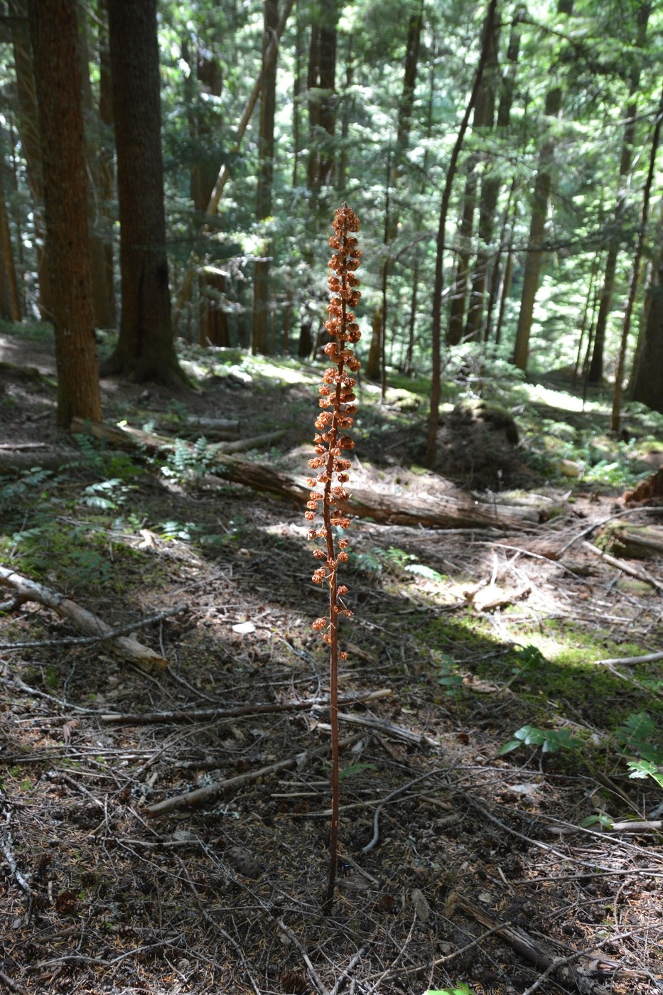 I saw a recent Trip Report which revealed the presence of Candystick on the trail. (Thank you AlpsDayTripper!) Ever since 2018, when I sought out saprophytes on the Elbo Creek Trail, but did not find Candystick, it has been a goal of mine. Could there really be Candystick in August? AlpsDayTripper provided photographic proof!