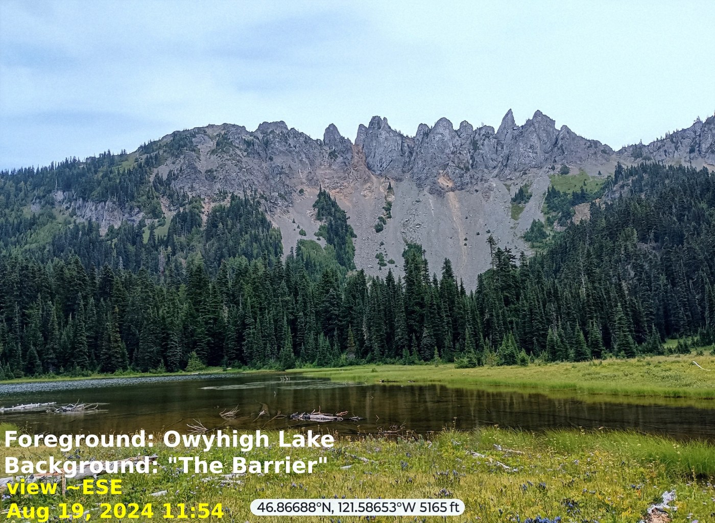 i am very thankful for ~360 degrees scenic views (including seeing the "top" of Mount Rainier cloud covered), "The Barrier" .. and enjoying the peace and sweet solitude in Tamanos Mountain, and Owyhigh Lakes this morning. 👍😊
