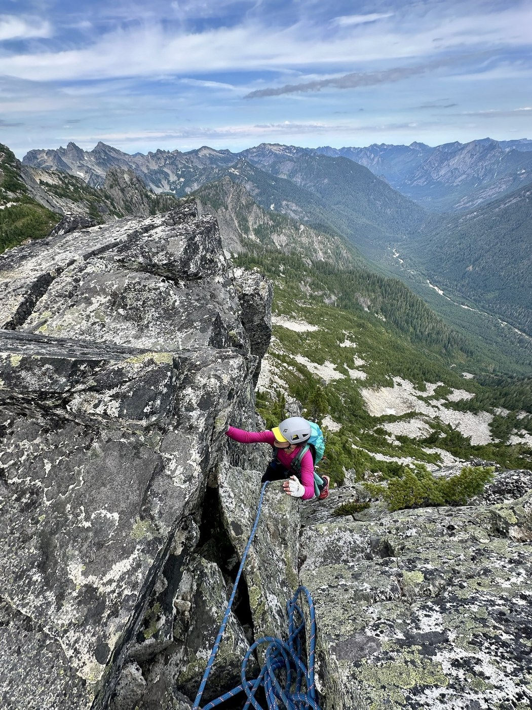 I can’t say I would recommend this peak to anyone who wouldn’t be carrying climbing gear / as a straight scramble. I know it DOES get fully scrambled but I would tell anyone going up for the first time to bring proper gear to climb/rappel and have the expertise to use it safely… it will be far better for you to have gear and not use it than get in a pickle. The fall areas along the rock are incredibly high consequence; plenty of places where a misstep would almost certainly mean death. This isn’t to say this is a maneating peak, but be smart! Value your safety enough to come prepared.