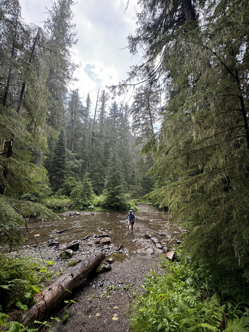 Began a four day trip on this loop seeing five people on day one and then absolutely no one else the remainder of our time on trail. This solitude is nearly impossible for July and August hiking west of the Cascades. We hiked clockwise and had several water crossings our first day. At 5.2 miles, a side trail drops right for 0.3 mile to a dilapidated cabin and a large forested campsite. You must cross the Salmo River to get to this and it was mid-calf deep in places. I wore lightweight minimalist camp shoes which worked well and kept my boots dry. There is a fair amount of thimbleberry brush crowding the trail in places, but otherwise the trail is in excellent condition. Thank you WTA!