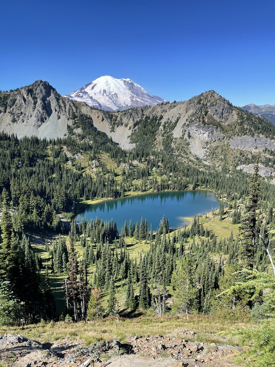 Beautiful day to be on the trails. I appreciate crystal lakes because it doesn’t require a timed entry permit to MRNP. Perfect for last minute hiking.