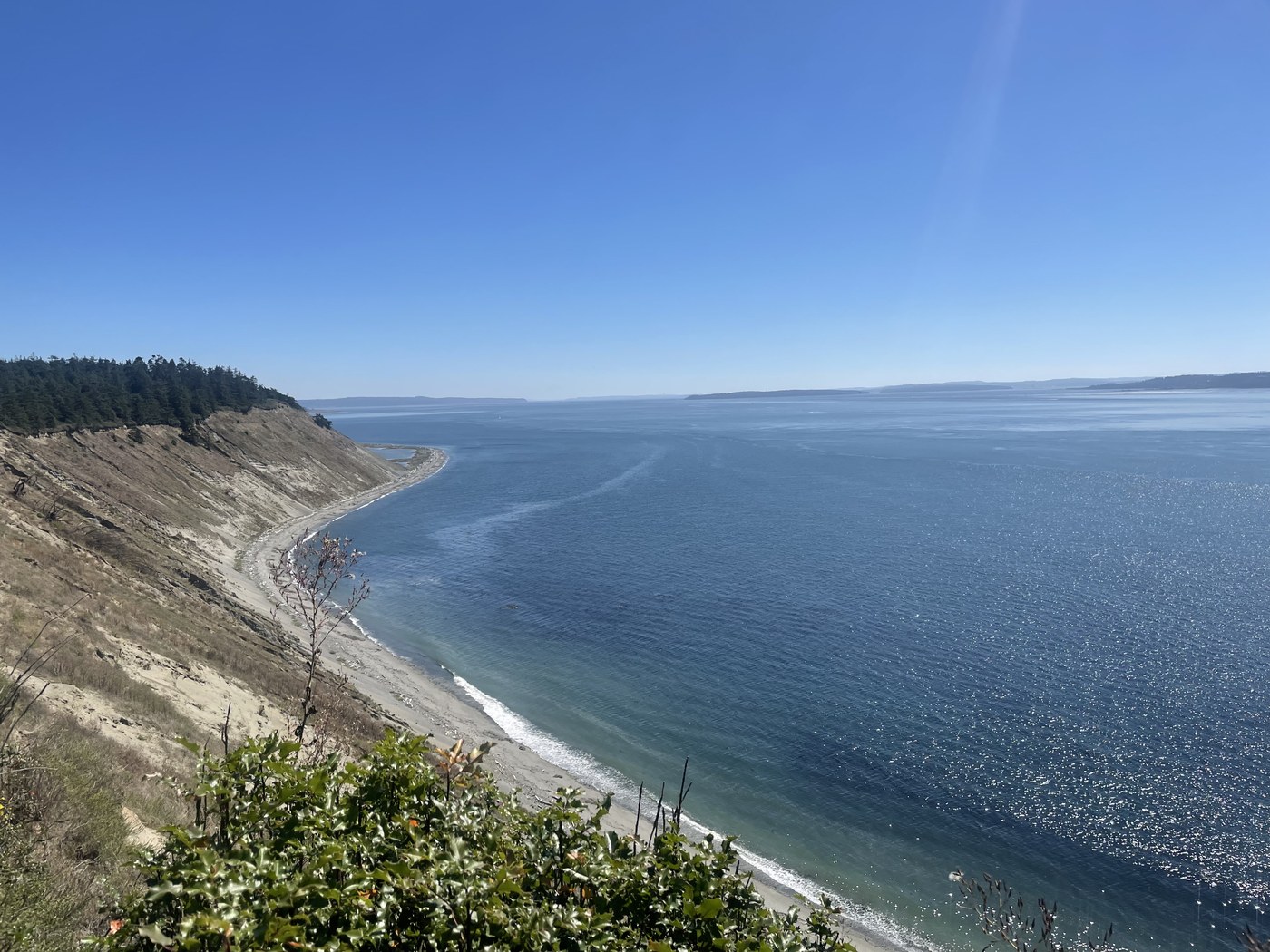 Amazing trails, beautiful views, wild Rhody everywhere (not currently in bloom). Started at the parking lot near Pondilla Lake, visited the beach for a few minutes. The mountains were out all day, no hazy sky!!! Took the trail from the beach to the PNT. Parts of the trail give a lovely view of the lake. Entered Kyle’s Kettle and got on Grandpa Tree Trail, which was fantastic. Brave Heart, Hoot In, Campground to Kettles Trail were all well kept trails. Left the state park and walked on Escape, Alder Grove, Humpty Dump, and then back on Kettles Trail to enter the state park. From Kettles, took Cedar to Cedar Grove Loop. This trail was the highlight of the day. Beautiful cedars everywhere and wonderful viewpoints sprinkled about the trail. Hopped on Cedar Hollow then took the Bluff Trail back to the car. All in all, a lovely hike, beautiful views, and well maintained trails. Hiked about 8.5 miles and phone mentioned 100 floors. Can’t wait to go back!