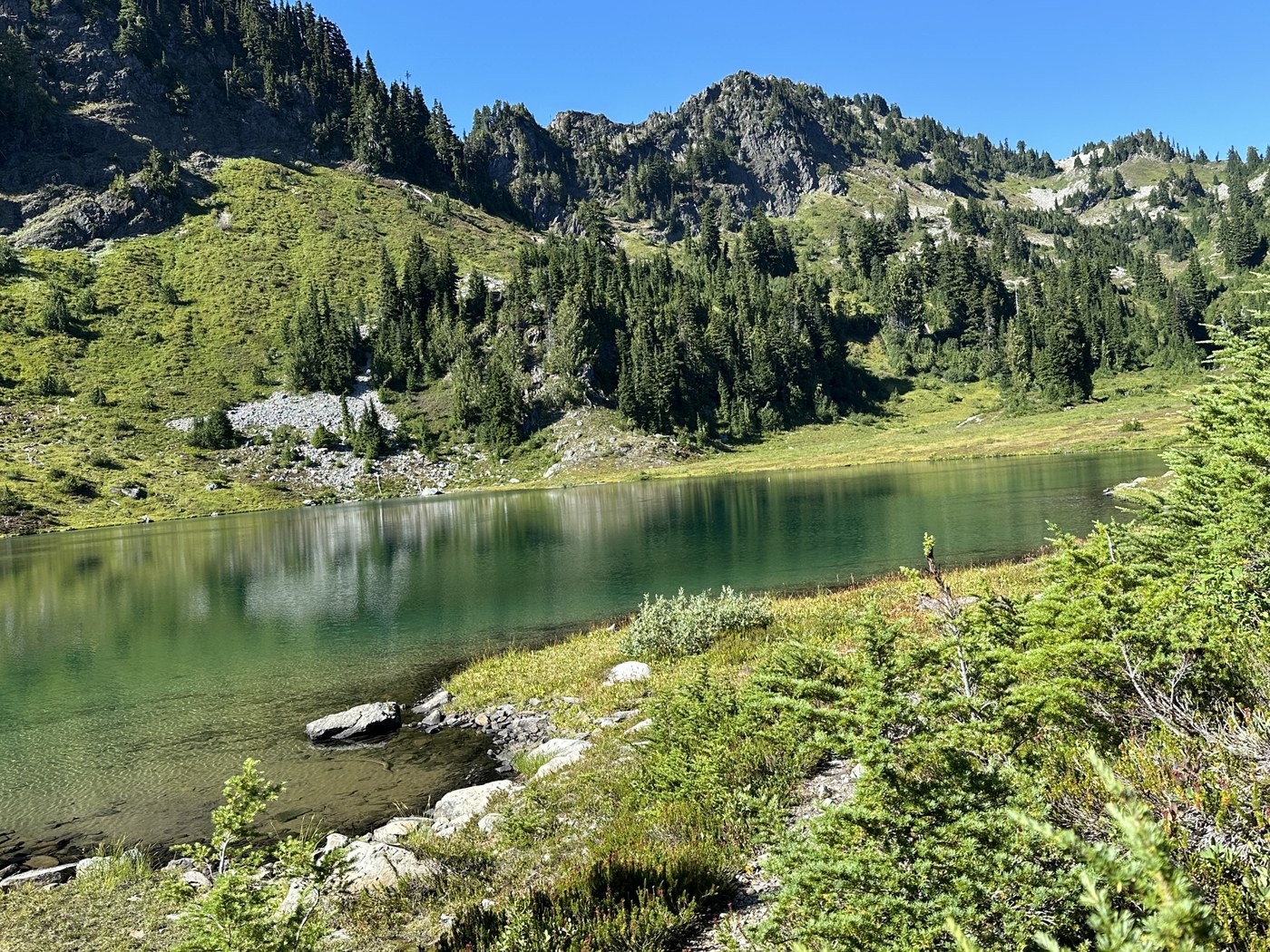 Backpacked to LaCross Basin and back from the Staircase trail head. Spend first night at Home Sweet Home, second at Marmot Lake and third ay Two Bears. The basin with the three lakes is stunning. Great colors from the water and so many berries. The hike to the basin is through woods. I prefer more open trails. A crew from Grey Wolf just finished cleaning this trail and it was incredibly smooth. No jumping over trees anymore. Another hiker saw one bear at LaCross lake. If you have the stamina camp at Hart Lake.