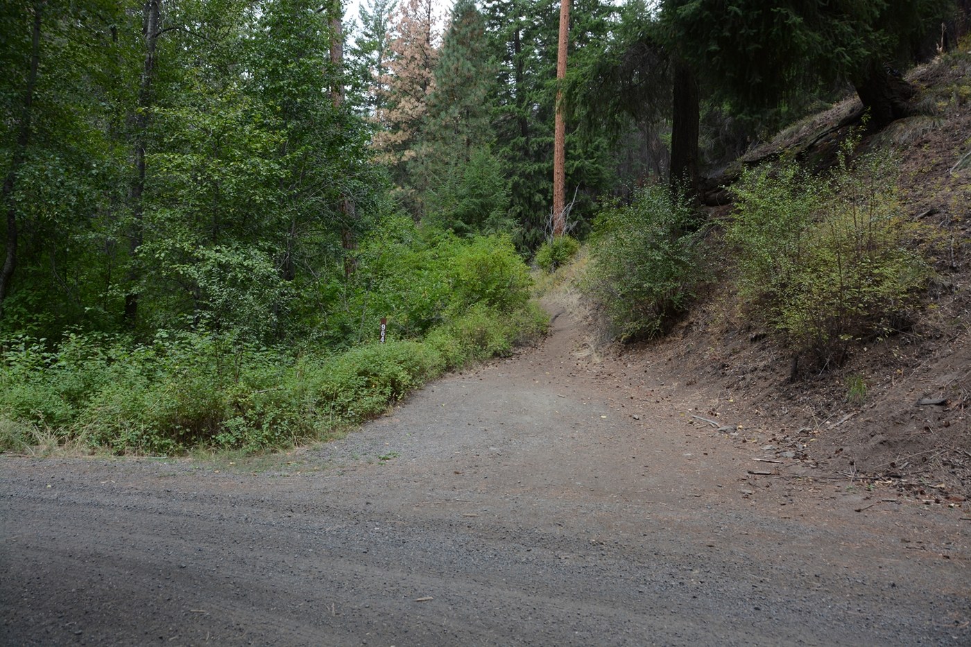The next hurdle was to recognize the trailhead. Some older Trip Reports show a prominent sign at the trailhead. It is now gone. There is just a small brown sign reading “964” which may be partially hidden by foliage.