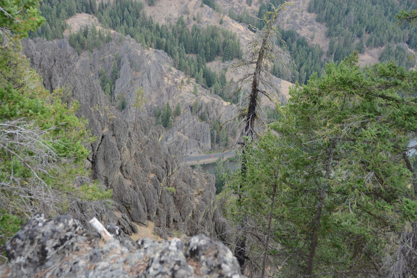 From the summit, you can see good distances in all directions, including down. The rock formation provides a bit of protection from the wind, but the wind wasn’t bad when I was there.