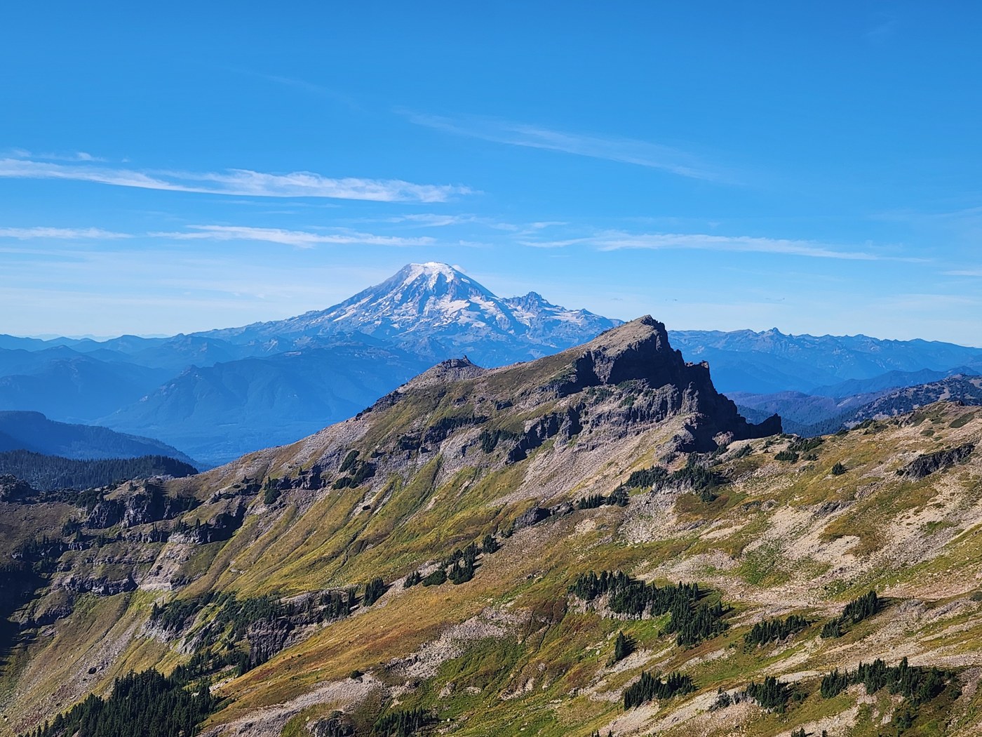 Camping: We camped in the trees just above Heart Lake. Nice campsite, but it was lacking in views. There was a really nice site just before the Angry Mountain trail junction with views of Rainier, but no water nearby. There was another spot in the basin between Heart Lake and Hawkeye point that also had an amazing view. It was also dry, but there was water running between it and Hawkeye Point. There’s another spot below Hawkeye point on the Goat Lake side of the ridge that looked great, as well.