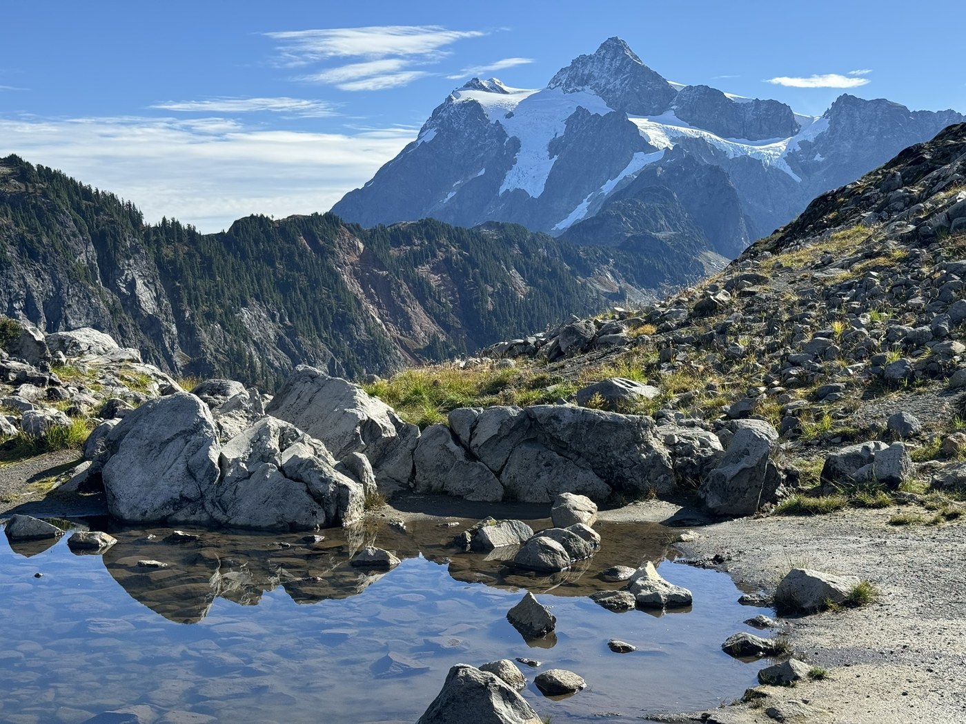 Made the right gamble this morning with weather zz forecast said partly sunny and then increasing clouds and that’s exactly what it was - but more like full sun over baker and shuksan when we got there at 10. Upper lot at artist point was full at 10am, but we got spots in the lower lot. No wind, perfect Mountain View’s and fall color popping through. Probably not peak but I feel like colors are a little muted this year and a lot later than normal. Hiked to Huntoon point with a 2 and a 4 year old and a dog, with lots of breaks for snacks, pictures, throwing pebbles into tarns and painting! One of my favorite annual adventure days. Picture lake also gorgeous - the lighting was better in the afternoon but no reflection. Still gorgeous