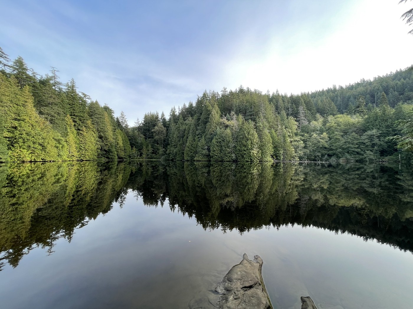 Lovely trail for a morning hike! When we arrived at 8 am there were no other cars, but by our return at 11 am there were several. There are many different mushrooms growing along the trail. It was not busy at all. We encountered a few people as we walked around the lake. This would be a great hike for families or those with dogs, as other folks have reported. The lake would be a fantastic spot to read a book or have a picnic.