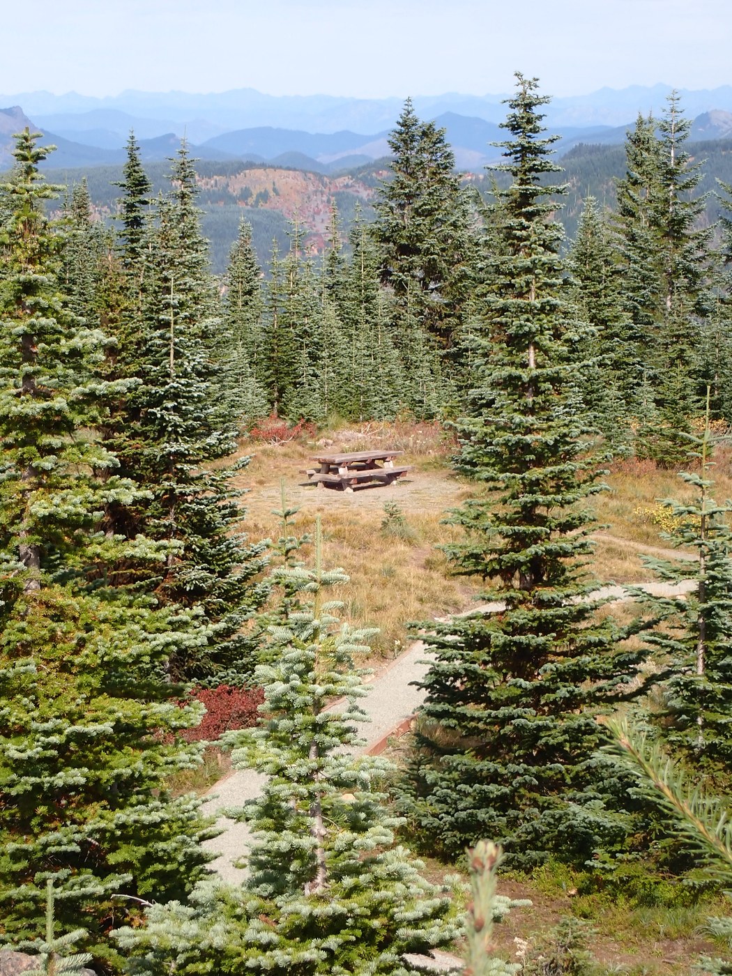This section of the trail doesn't have much deciduous foliage to change color, but the lookout had some nice reds and oranges starting in the shrubs. This section of the trail definitely sees mountain bikers, so be alert to not get run over!