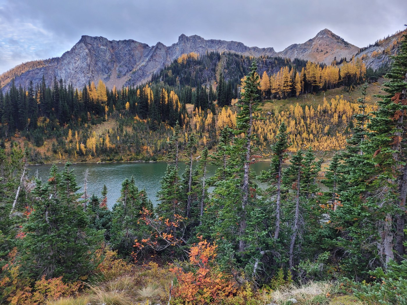 After crossing the creek and passing the N.F. Chiwaukum junction, the trail leaves the burn zone and enters living forest. There are several areas of tangled blowdown and thick overgrowth, but the trail remains quite followable. A lot of the trees are easy to bushwack around and avoid altogether. The massive cottonwood blockage has been completely cleared out and it's great. The head of the Chiwaukum Valley can be tricky to navigate as the trail enters the meadows. Follow the faint tread, detouring around thickets as neccesary, until you come to the switchbacks up to Flora Lake. The trail is in much better shape from here on out. I camped in a sheltered little spot at Bringham Lake. There are established camps at Flora Lake and a pit toilet. Bringham Lake has neither, but there are flat areas in the meadows near the lake that can fit a tent. Larches are perfect right now and Brigham has a good number of them. The trout fishing is good, too. Flora's fish are bigger, but I felt like the Bringham fish had more fight.