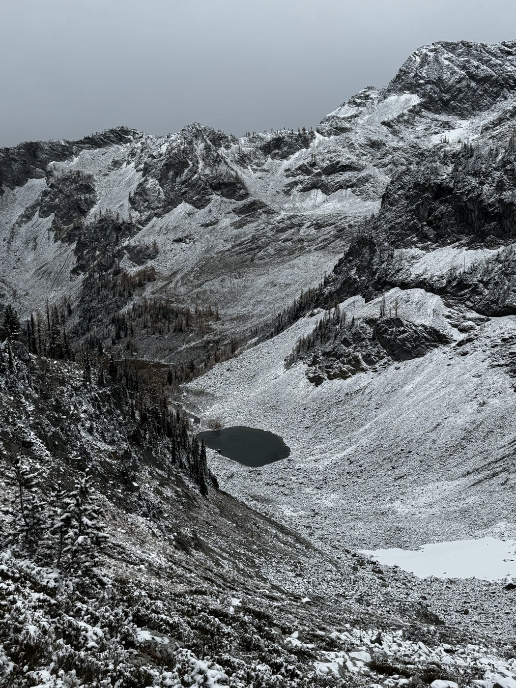 Going down was considerably slower than going up due to the snow until I pulled on my spikes. Then it was mountain goat o'clock.