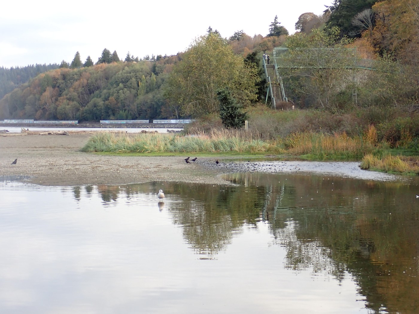 No salmon yet. We were hoping to see some returning salmon, but we must be early. I guess salmon are never early, nor are they late. They arrive exactly when they mean to, but we were early. Nice walk around the park with some unexpected sunshine. Trails are all in good condition. We parked at the QFC and used the loo in Starbucks, a convenient spot for the end of the hike and our coffee treat. We hiked a couple of loops and got about 5 miles and a bit of uphill.