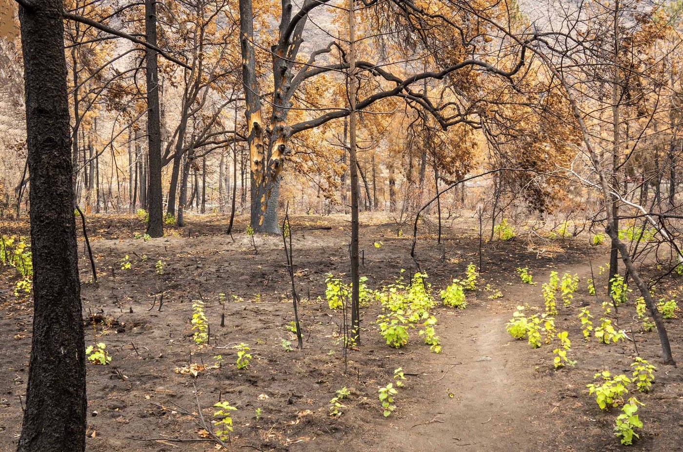 Thank you very much for your report and photos which show the desolation of the fire and the regeneration which is already occurring. I especially like your third picture which shows the survival of the big oak and aspen on the South side in the big meadow. It saddened me to read and see the desolation, but the new growth gives hope it will eventually be a nice meander. However, as you say, it will never be the same in our lifetime!