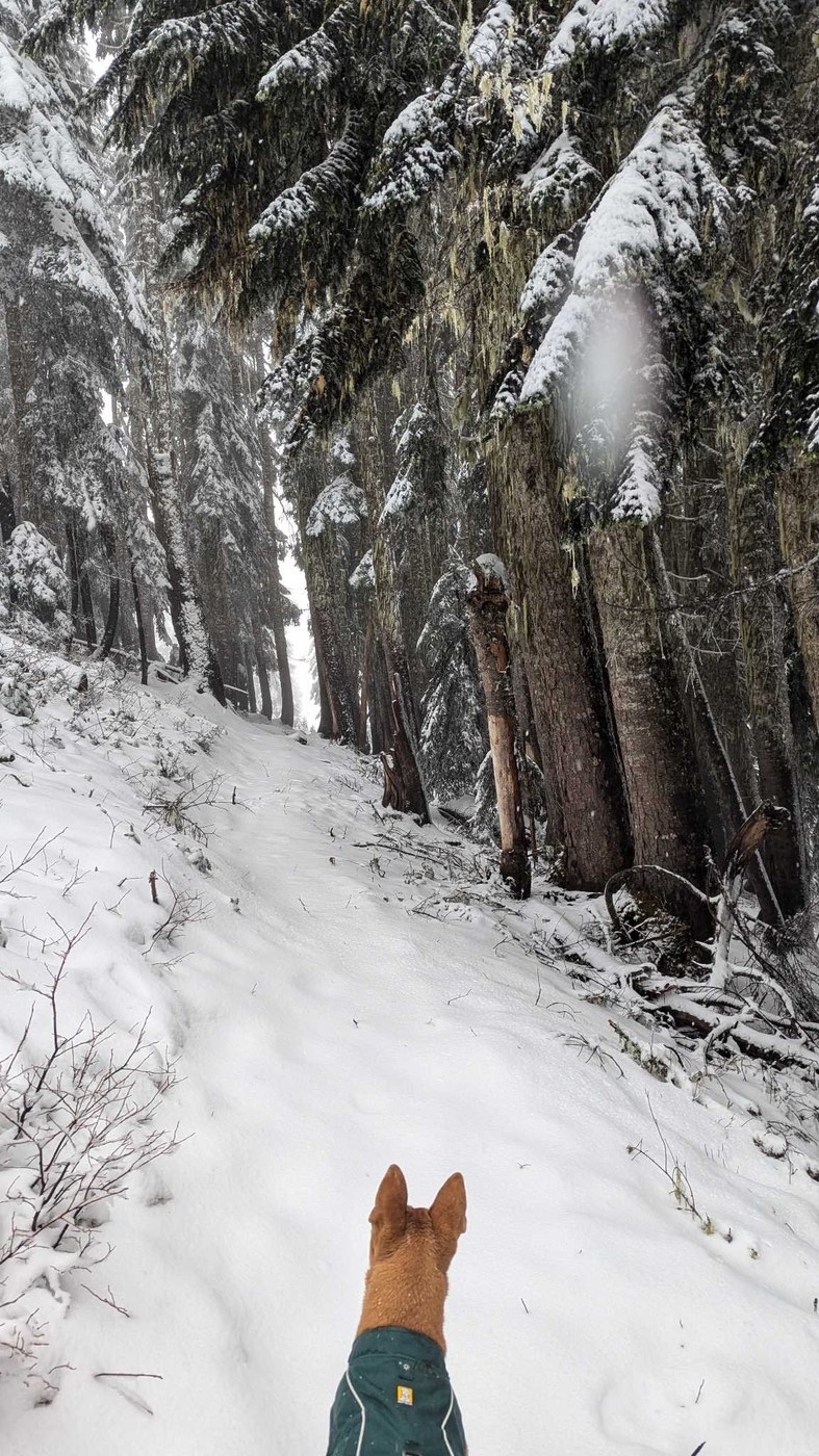 Beautiful trail, but definitely be ready to posthole through 6-8 inches of snow for the last two miles. the trail may be difficult to find in places and it gets really exposed near the top. There's also very limited cell service here so please be careful.