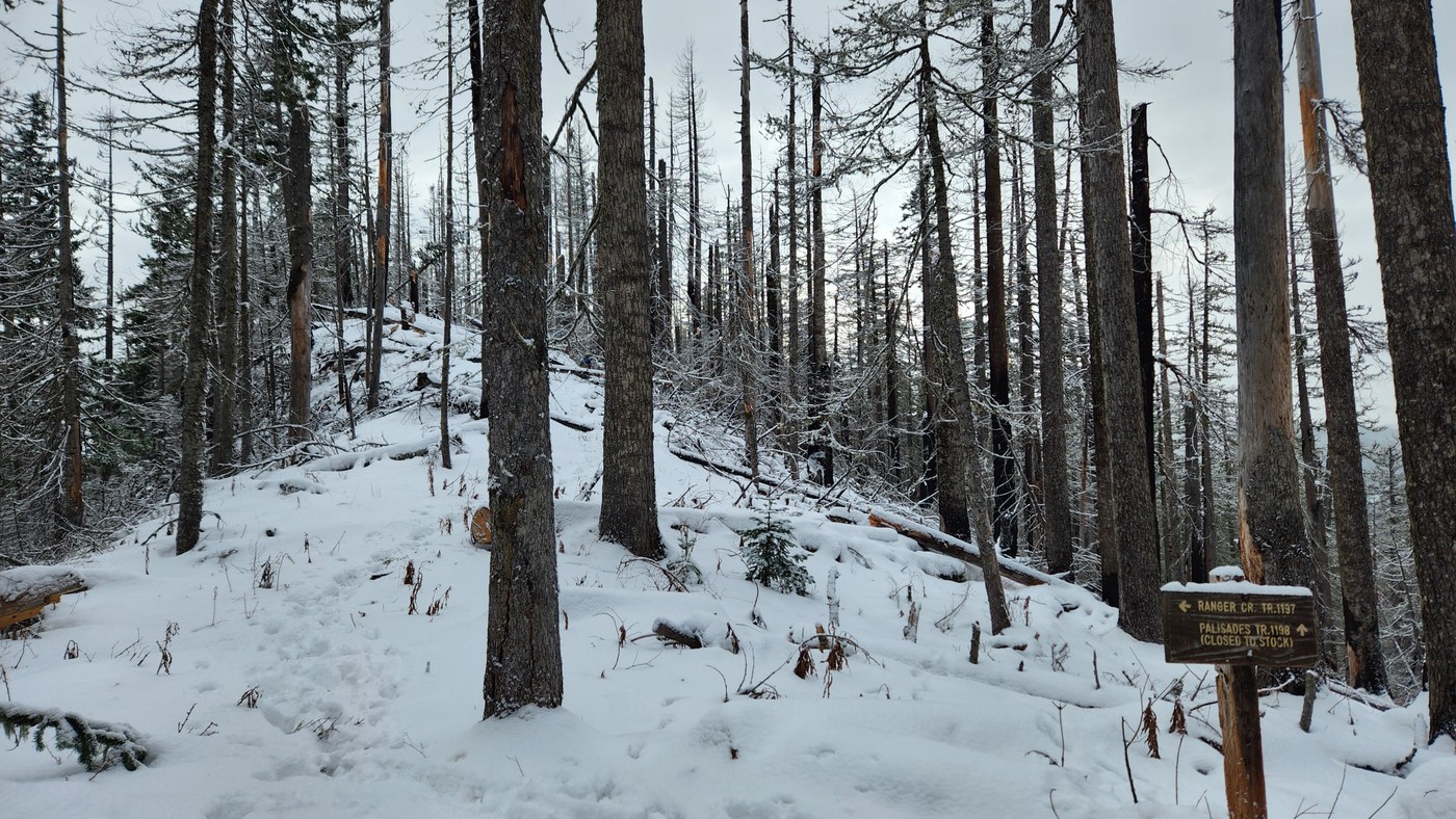 I was in a group of 6 heading to Little Ranger Peak starting from Camp Sheppard at 8 am. The low-lying part of the trail is in good condition and snow-free. Snow starts a little above the lookout point and gets to about a foot (or more) deep by the time you get to the ridge. There is also significant blowdown from the recent storm, particularly a few downed trees starting about halfway between the lookout point and the ridge (and more on the ridge itself. We turned around just short of where the trail passes the summit at about 12:10 pm. Going down was significantly easier, and we reached our cars again at about 4 pm.