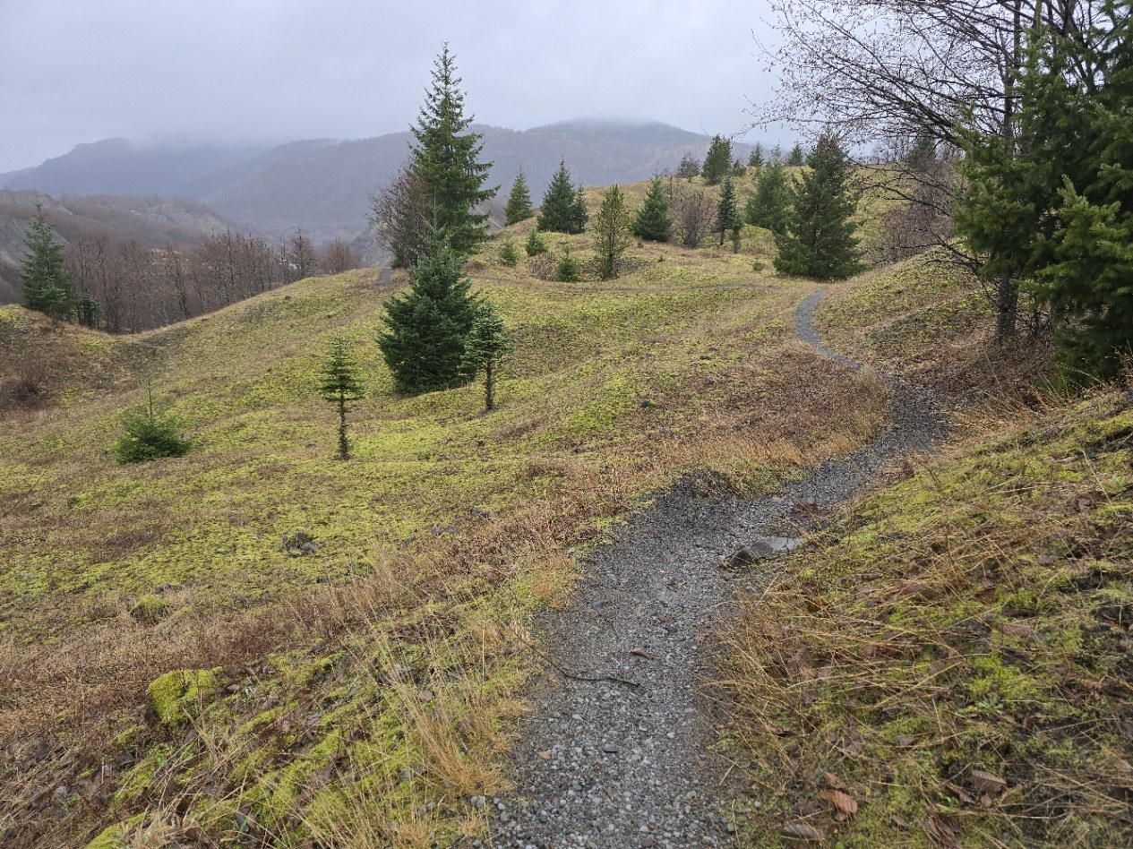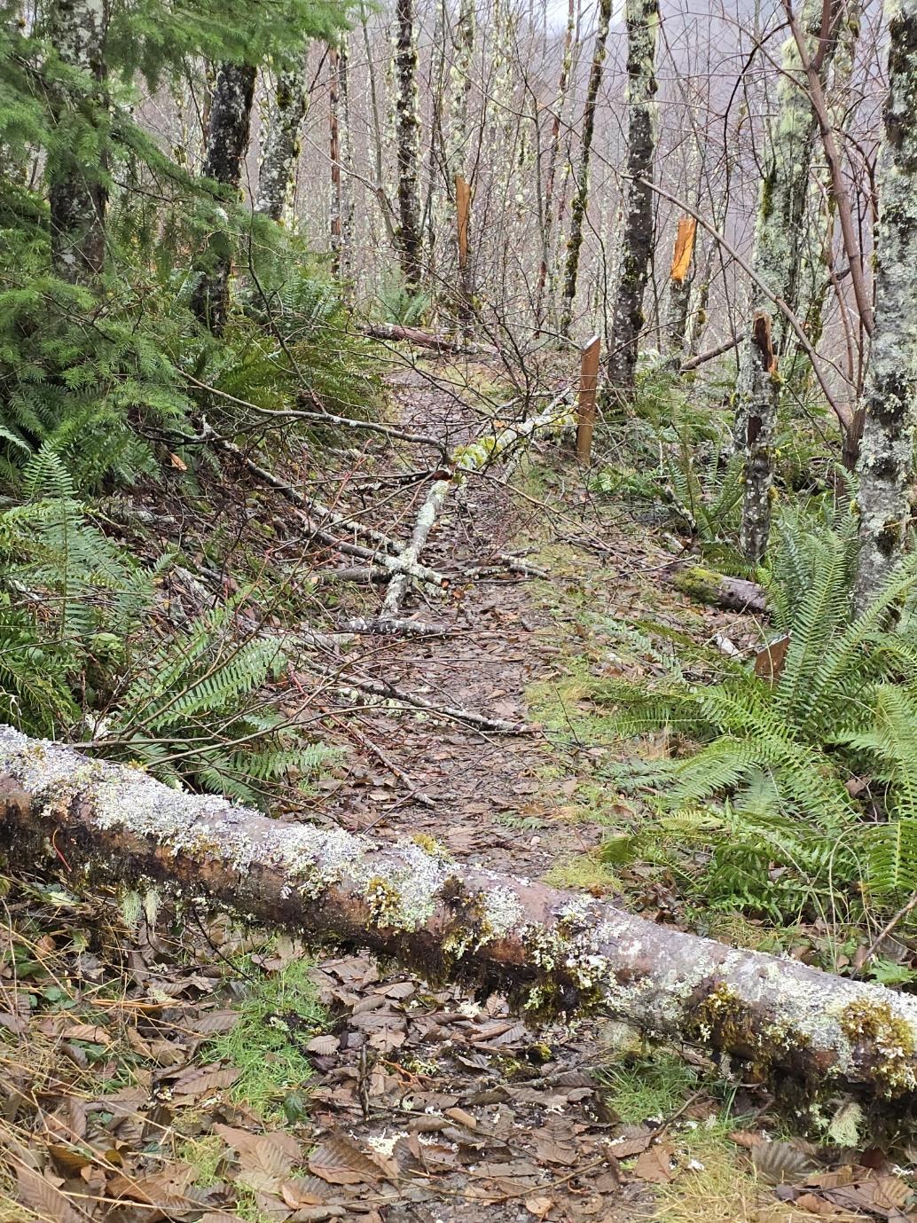 My husband and I were able to squeeze in this hike on a misty day between heavier rain. It was great to get out! There was no snow or ice on the highway to the trailhead; just some snow beside the road at the high point. We saw a few elk closer to the Coldwater area. Most of the trail had no issues, but the lower part of the loop near the beaver ponds had muddy sections and one of about 20 feet where there was water over the trail. I was glad to be wearing waterproof boots. Also, there were some trees over the trail as we got near the parking lot, going clockwise. We were able to get past them without too much trouble. P.S. FYI, there are no bathroom facilities at Coldwater Lake or the Hummocks trailhead (thanks to the vandals), so be prepared!