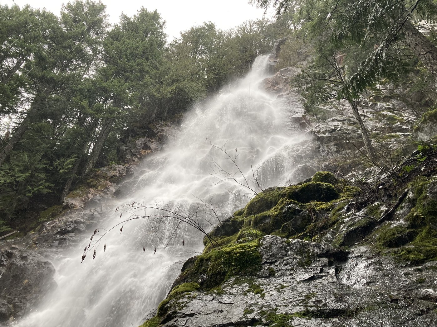 I wanted to check out the falls after the recent rain, and they were absolutely roaring! Trail is snow free (though it was snowing at the falls), and not overly muddy. We came up via the standard route, and down via the new Teneriffe Falls Connector and the Mt Teneriffe road/trail. Waterproof shoes and gaiters are a good idea. The switchbacks up to the falls are very rocky and steep - go slow and don’t roll your ankle. Overall great hike!