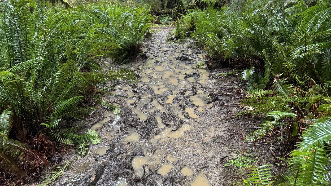 This is a wet hike, and I expected it to be. At 11am on a rainy Thursday there were a couple of cars at the trailhead. Road has some deep water filled potholes - also expected. I took a turn left to Ira Spring trail to make the 3miles counterclockwise loop picking the main trail on the way back. Like the previous reports described- Ira Spring part is nice, lots of moss, some cool boardwalks. The main trail is a mud bath, waterproof boots and pants are helpful. Nice rainforest hike with some river views. And some seriously big trees