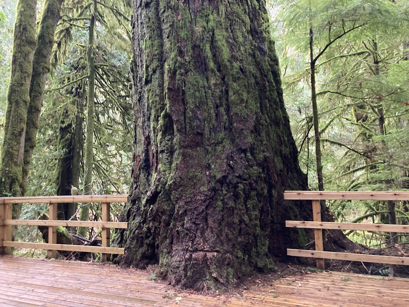 Big tree trail near Bremerton. Really easy to miss the turn. It looks like a driveway to a house. Keep going and there is a fairly large parking lot at trailhead. You can take old road or trail. All the elevation gain/loss is at the beginning of the trail. Trail has lots of roots. Quiet forest, no one else there. Great spot if you are nearby. I wouldn’t make it a destination. I was hoping for a super easy hike for elderly relatives, but will need to keep looking for that criteria.