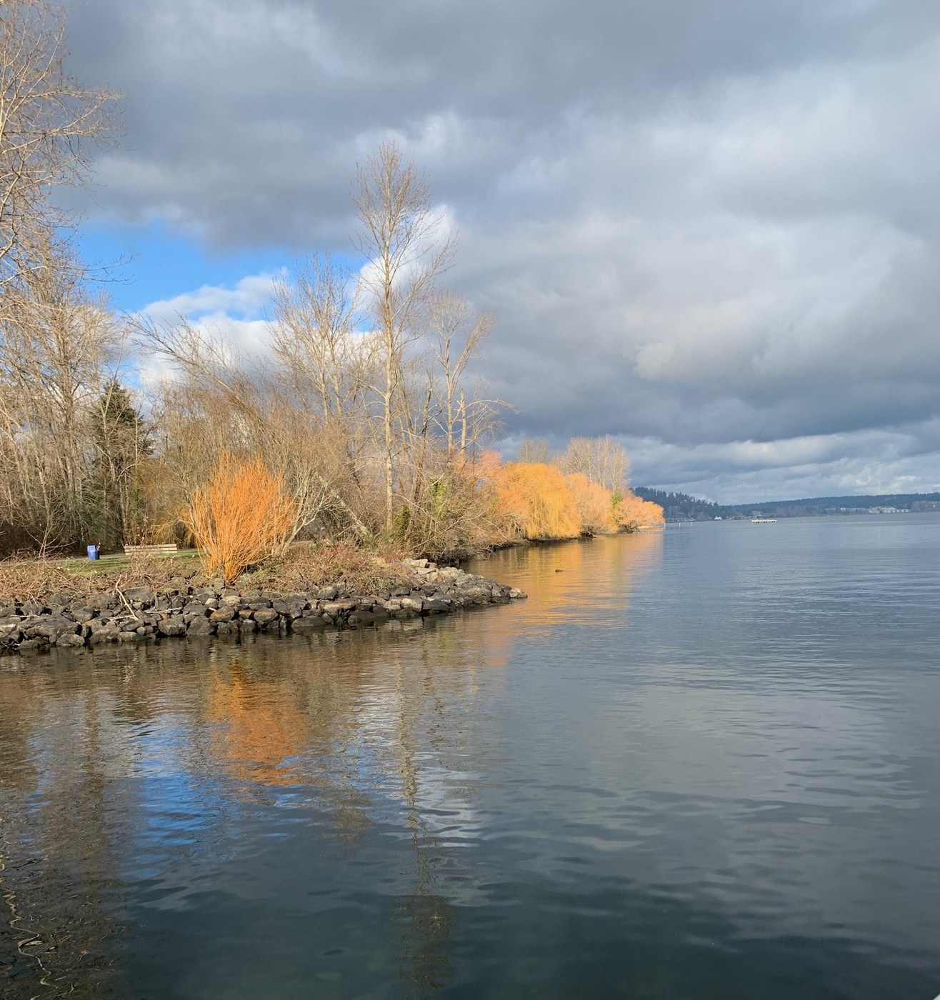 The "Duck Ponds" were fun to explore and not well known as several people we asked did not know of their existence; we got to Lake Washington an noted some "fall" color on the shore to the north of us. We finished the hike by going over "kite" hill and back to our vehicle. My phone indicated a 2.5 mile loop. To my surprise there was evidence of Beaver activity near the ponds, gnawed trees and logs. No Beaver sightings, however.