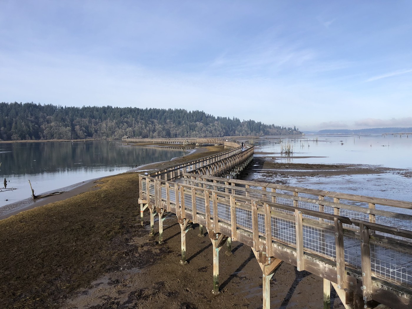 Went around 11am and the tide was beginning to recede. It was MLK Jr. Day and the nominal admission fees were waived for the holiday. There were a lot of families with young children out to enjoy the sunny winter day. Saw a lot of ducks, birds of prey, herons, more ducks, and lots of small birds in trees whose names I don’t know. The boardwalk was a little slippery from the first frost of the year, but still very walkable. Nice day to be outside!